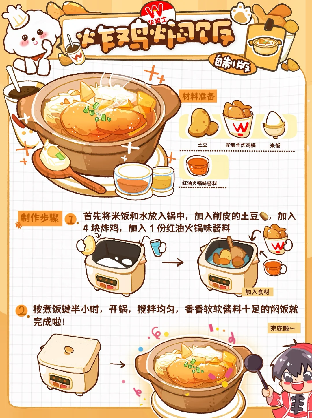 米饭吸满火锅红油和炸鸡的肉香!还可以做蜂蜜芥末味焖饭!也很绝!