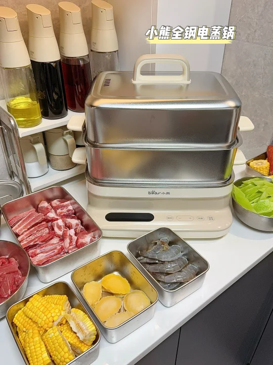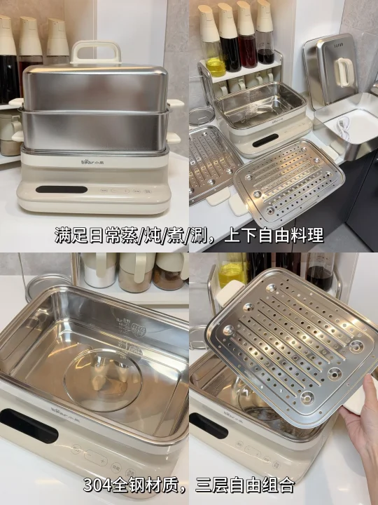 最让我安心的是,它与水和食物接触的部分都是304全钢材质,0塑料0涂层,无论做辅食、蒸面点都没异味,老人孩子吃着都放心!而且清洗也方便,不用担心水渍水垢!