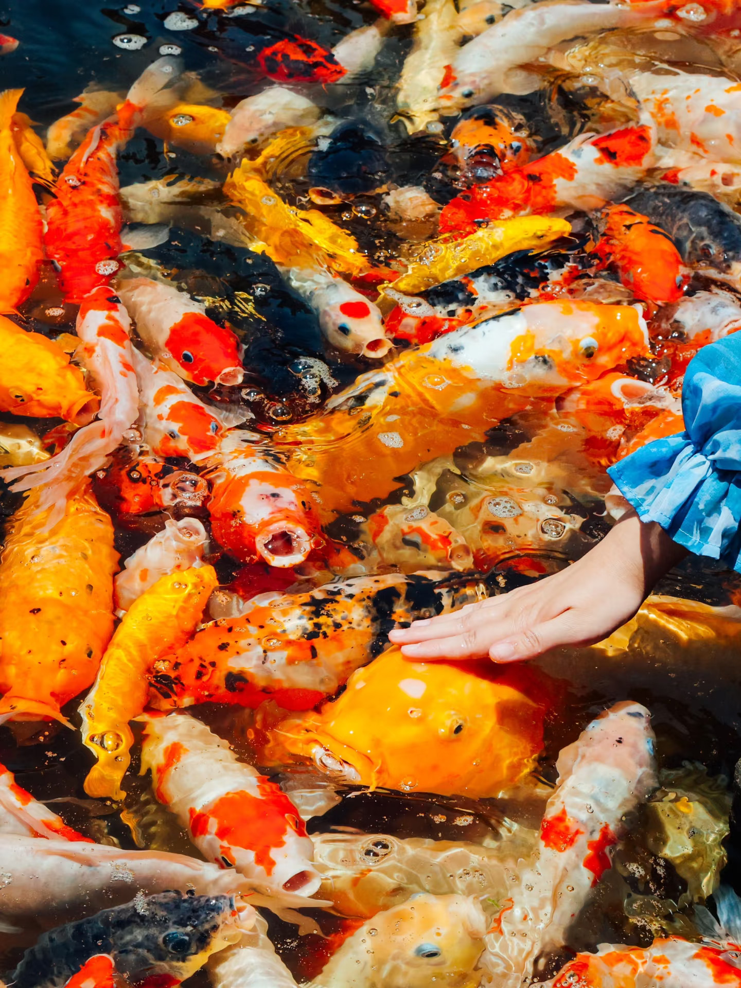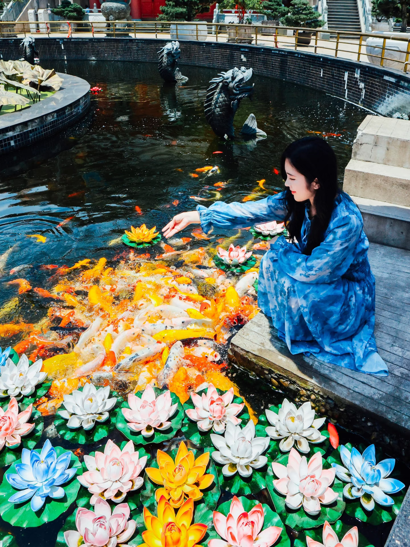 就在善财童子像旁边,每条佛鲤鱼都充满灵性,在这摸锦鲤和喂锦鲤会有好运哦~