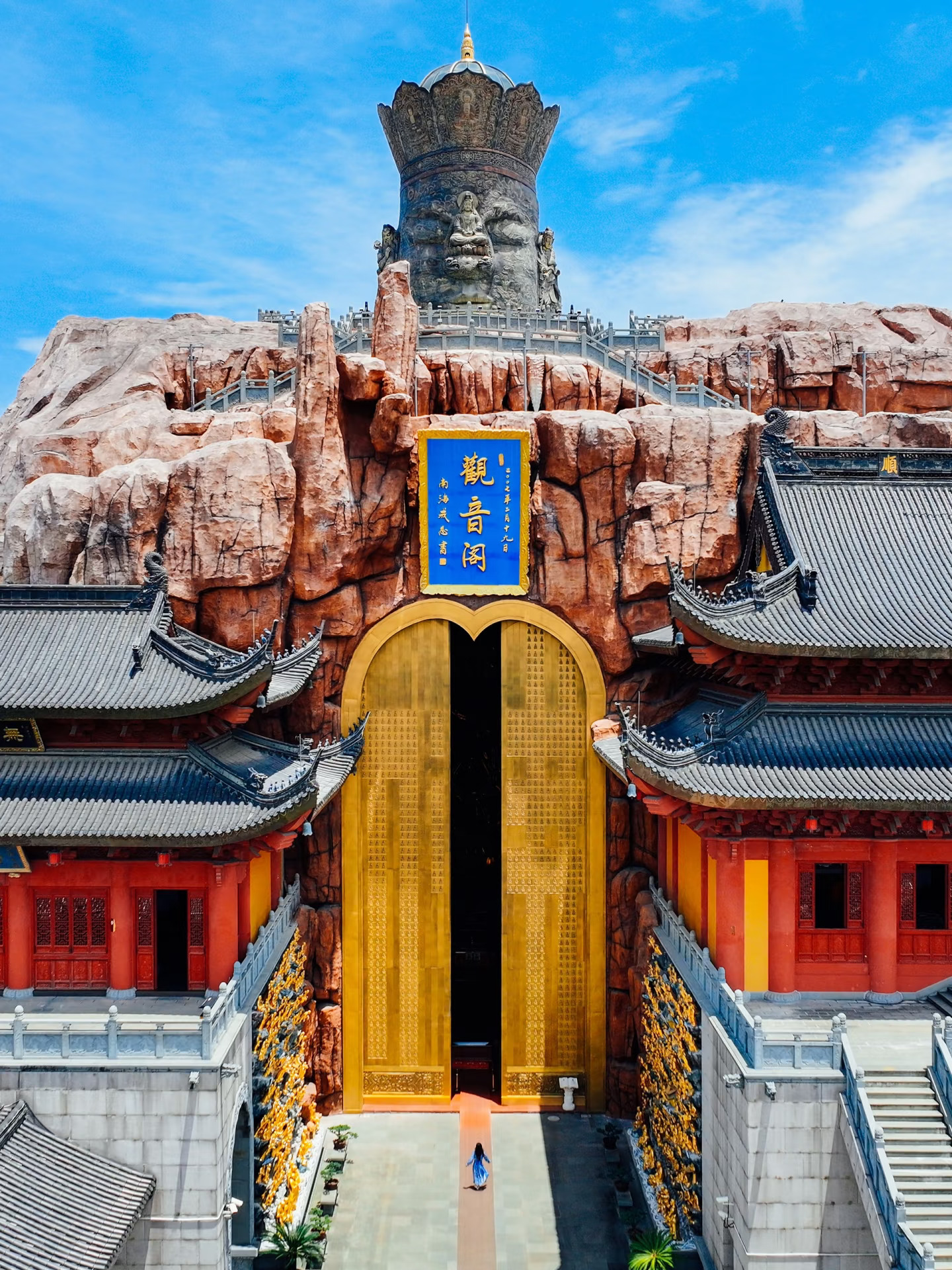 目前亚洲最高,容纳最多的观音阁,其中一尊是世界最高室内观音像,总高34.101米。