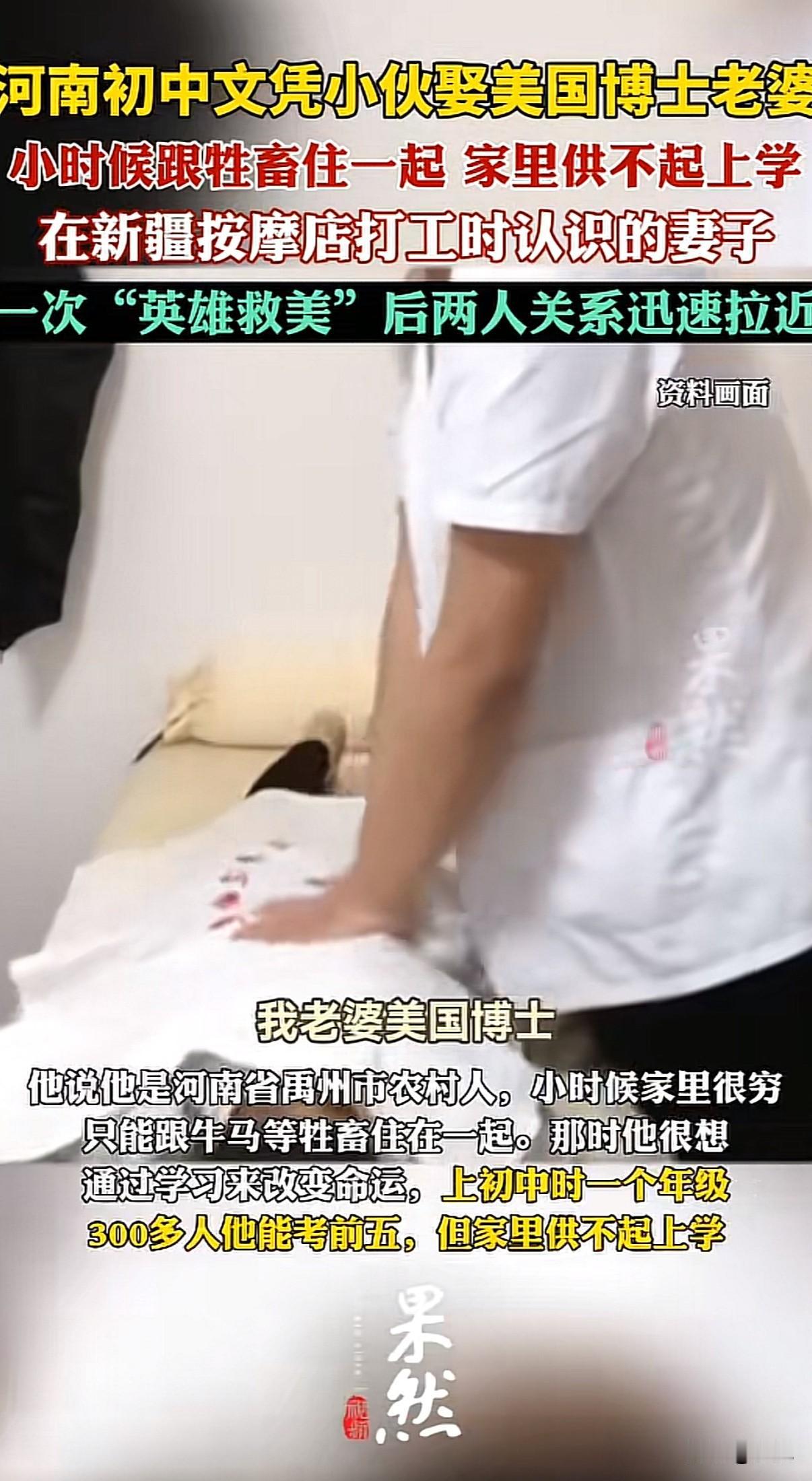 “穷小子逆袭娶洋博士”!河南禹州农村的吴彦举,初中毕业,家里穷得跟牛马住一屋,右眼几乎失明。2004年在新疆按摩店打工时,认识了来做按摩的美国姑娘Amy。 认识过程特戏剧。那天Amy慌慌张冲进店里,指着门外一个跟踪她的男人。吴彦举虽然听不懂英语,但立马把人赶走,还送她回家。这事过后俩人才熟悉起来。 2004年10月31日,他陪Amy逛街时突然问:"你愿不愿意做我女朋友?"对方点头,他顺势牵了手。 谈婚论嫁时所有人都觉得不靠谱。但俩人特别坦诚:他告诉对方自己右眼失明;她也坦白欠着几万美元学贷。2005年3月9日领证那天,住完30块招待所,身上只够吃一顿饭。 回老家更心酸。结婚宴就是几个凉菜加面条,连热炒都没有。美国媳妇面对农村旱厕不会蹲,这成了最大挑战。 现在二十年过去了。当年那个穷小子如今有两个优秀女儿:大女儿被美国大学录取,小女儿是国家一级游泳运动员。妻子也从本科念到博士毕业。 吴彦举最近开直播说起相处秘诀:"吵架一般都是老婆妥协,她知道我比较强势。"妻子则笑着展示定情信物——那个会发"I LOVE YOU"的捏捏熊。 很多人说这是运气。但能从牛棚走到今天,更关键的是:一个不会因为贫穷自卑,一个不会因为条件优越傲慢。感情里最重要的,从来不是学历和国籍的对等,而是灵魂的平等对话。