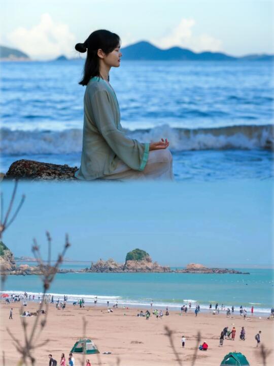 沙滩疾走!细沙阻力+海风清凉,比跑步机燃脂效率高2倍,记得脱鞋感受足底按摩,促进血液循环。