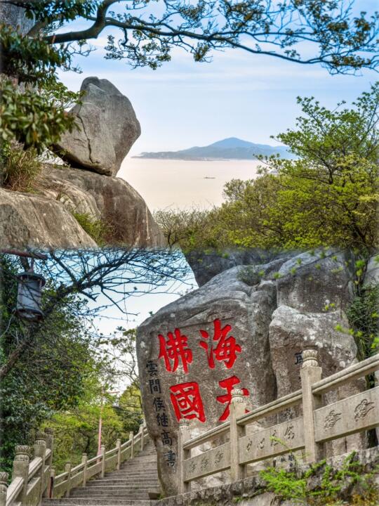 🚶 路线:佛顶山(缆车上山)→慧济寺→香云路(1088级台阶下山)→法雨寺→千步沙→百步沙→南海观音→紫竹林