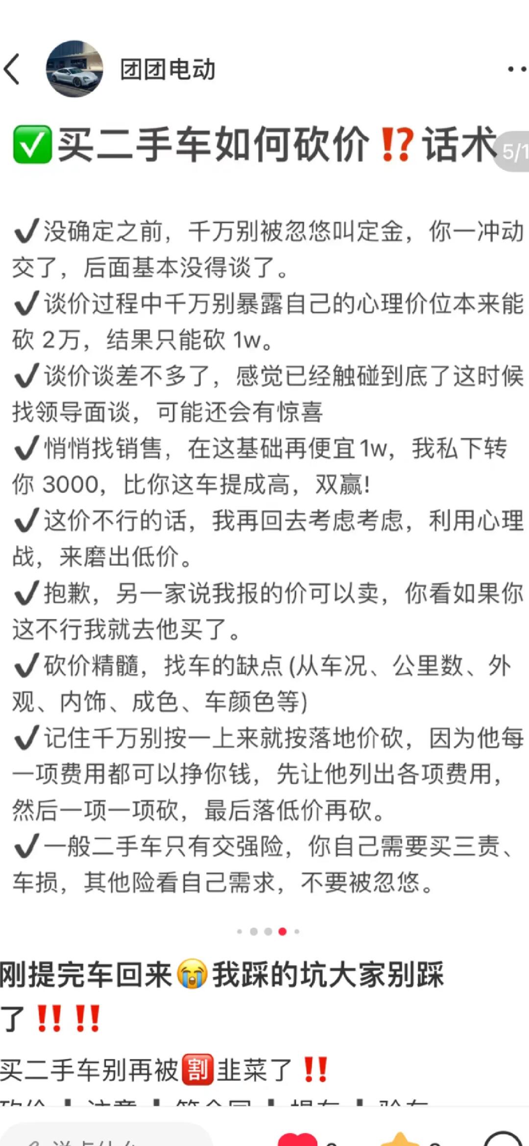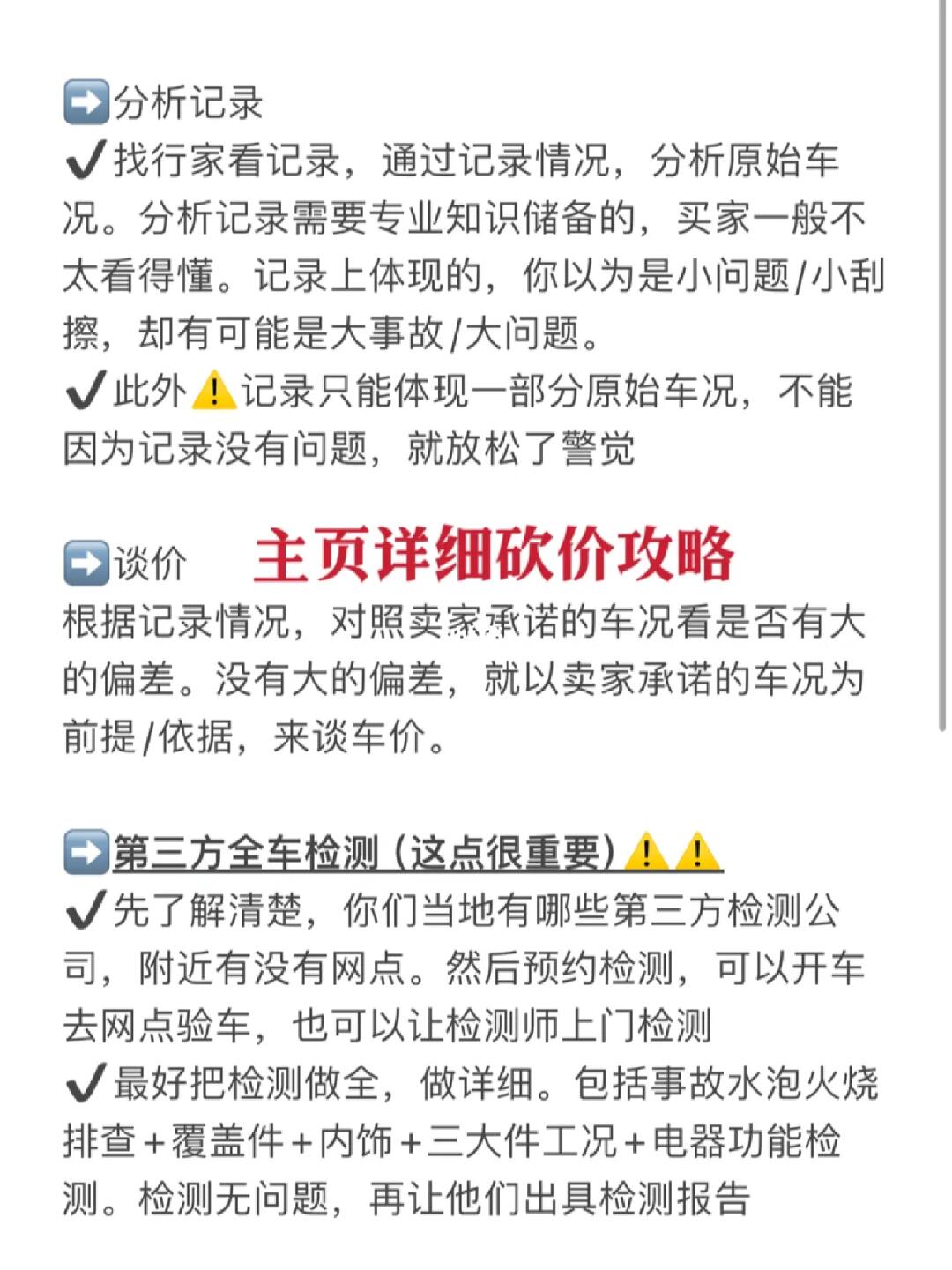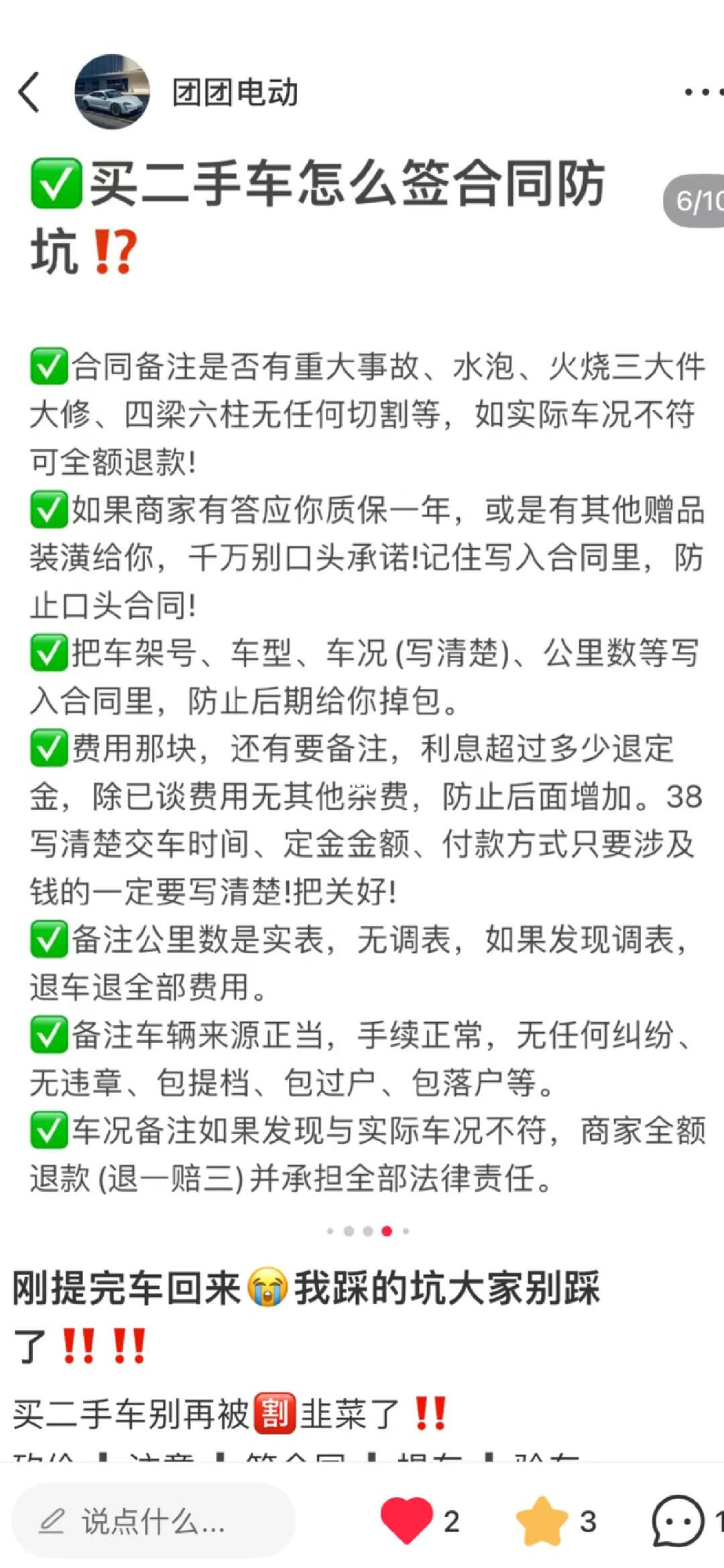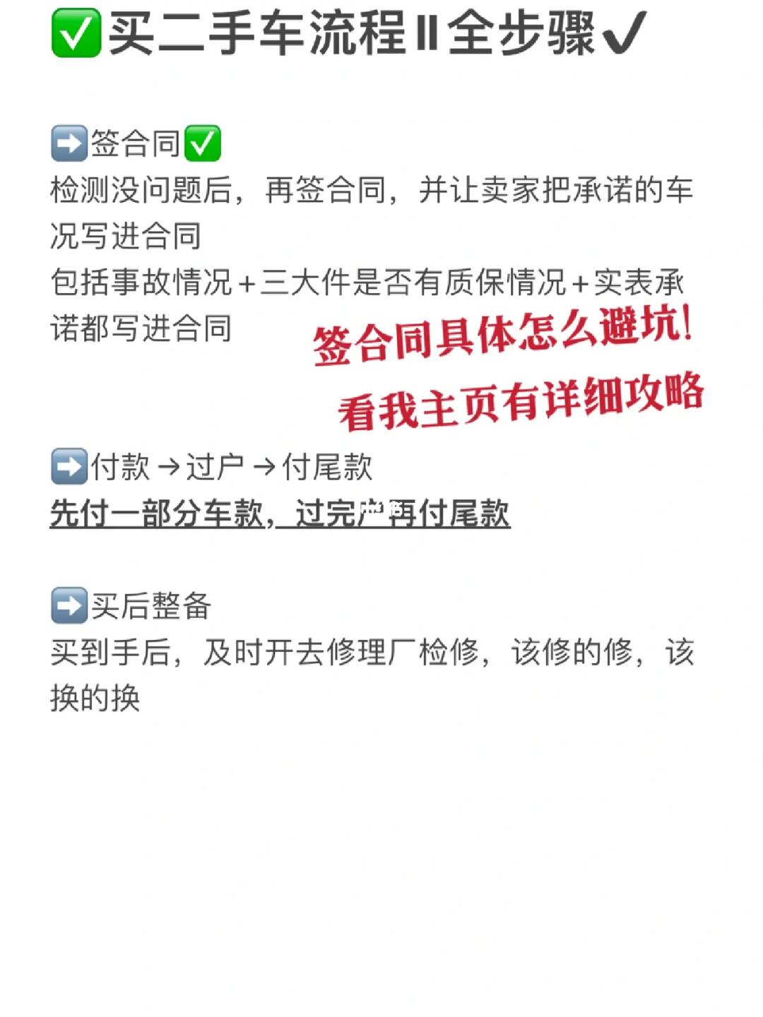 6、7🈷️计划买二手车的朋友看过来‼️ 车贩子套路又又又升级了⚠️😭😭 这些坑你们千万别踩l‼️ ✅【图2-4】:买二手车前一定要注意的点➕过户、里程数、年审、双记录、保险、车况……缺一不可‼️小心被割韭菜 ✅【图5-7】:提二手车全流程‼️手把手教你怎么买⚠️谈价、签合同、提车…. 主页还有更多二手车、新车攻略✅ 🔥关注团团,帮你买到最心仪的车🔥