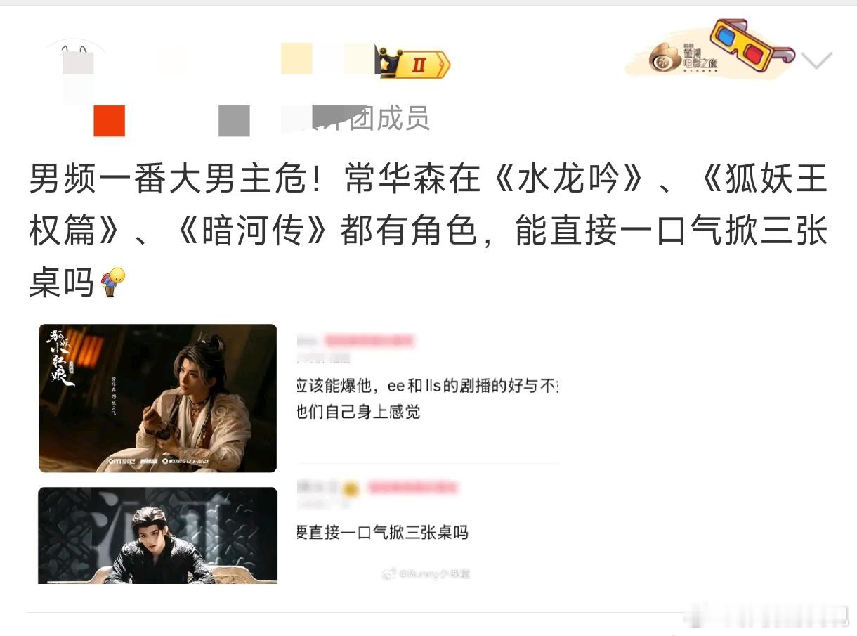 常华森暗河传破万九宫格 疯批人设容易出圈,加上常华森演技也不错,这次圈了不少新粉,但还是要提醒一下,不要每次有新剧开播,都营/销掀桌话题,暗河传全员上桌不好吗?