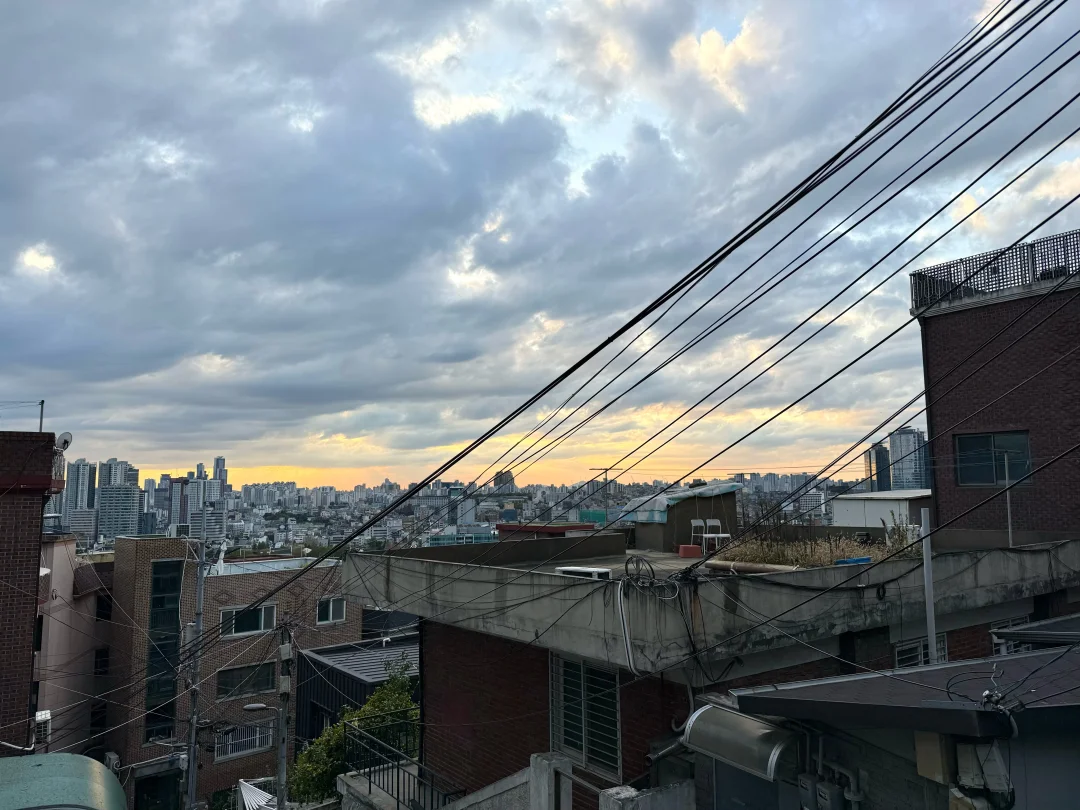 在梨泰院看见了很美的落日~ (跟农村似的🫢)
