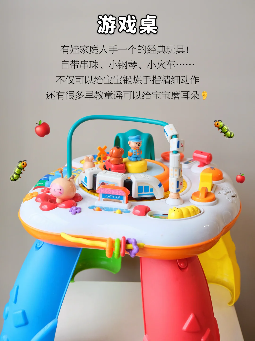自带串珠、钢琴、小火车……可以锻炼宝宝手部精细动作,还可以播放童谣给宝宝做早教启蒙