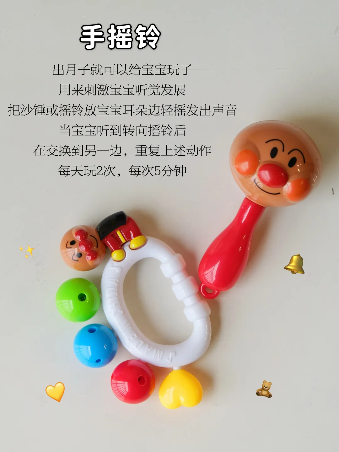 出月子就开始用,放在宝宝耳朵边,刺激宝宝听力发展