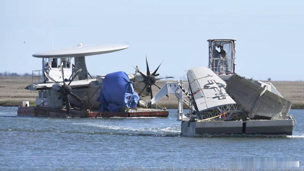 ➡️图4~图5是坠海的美军E2D,为了避免被人造谣KJ600,图5切割捞上来的E2残骸机徽为证。