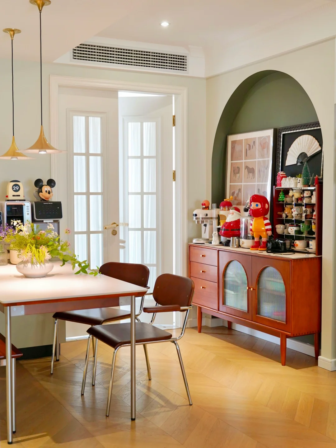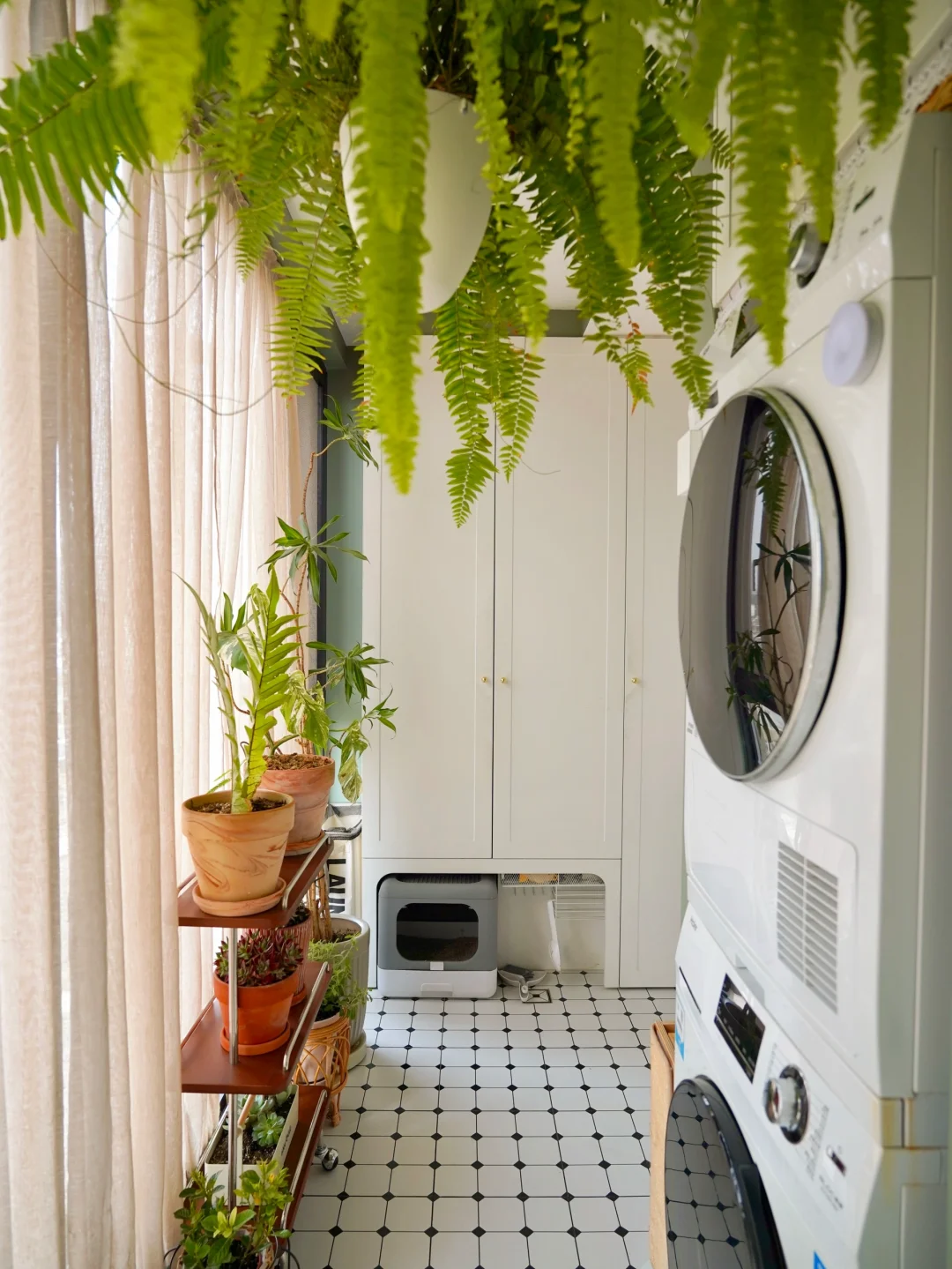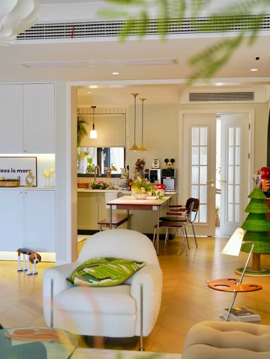 - 装修初期家属偏向还是不要保留生活阳台 我执着的想把休闲阳台和生活阳台区别开 所以在厨房和生活阳台的布置上还是动了一点脑筋 虽然厨房的空间要比同户型邻居的厨房空间小不少 但是我多出来的生活阳台区域也成了我的小确幸 厨房区域餐厨一体日常和家庭成员交互也变多 生活阳台既作为洗衣晾晒(虽然现在都在挂绿植) 又作为猫主子的生活用餐及猫砂盆区域 小小空间里被我布置成了“小森林”的样子 有时候“喜欢”比“合理”更适用自己