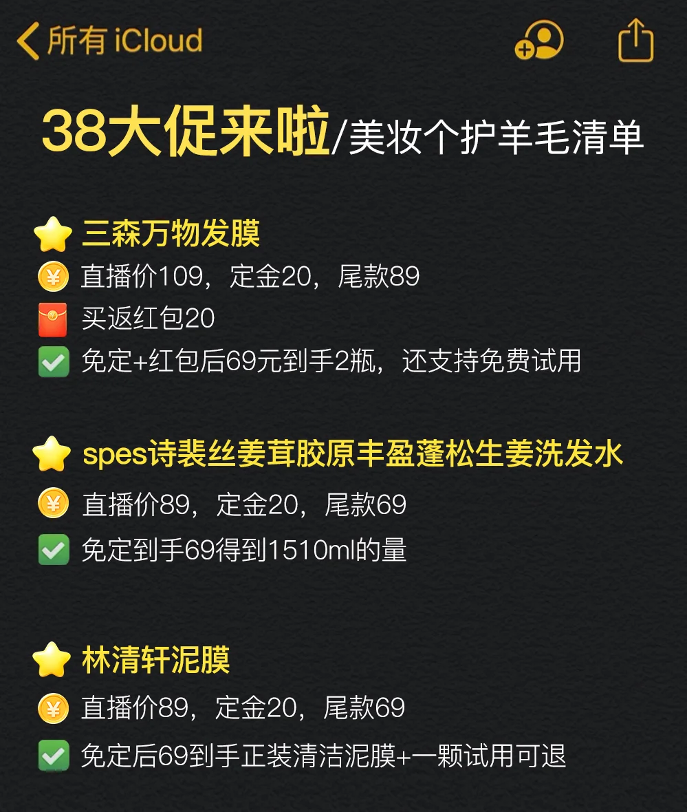 女神节倒计时了,🛒还没加🈵的不用急,美妆清单我都整理好了,照着抄作业就行,这次蜜蜂惊喜社美妆好物还是一如既往的全,洁面、面膜、脱毛膏、身体乳等等全都有,而且价格灰常美丽,就说女生们都爱用的水之蔻美白身体乳吧,🆓定[五R][零R],付[六R][八R]就能到手超[三R]瓶的量,正适🈴低价囤货!其他好货我都放图里了,按需种[种草R]哦