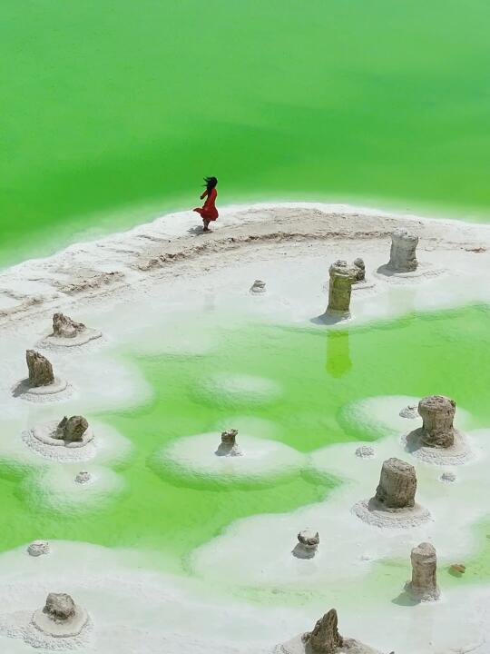 接下来5月的西北 每一帧都是一场五彩斑斓的梦 随手拍的每一张live图真的把我美哭了 以前会以为这里很荒凉 实际这里比想象中更浪漫 荒漠大地里竟然会有晶莹剔透的玻璃果冻海水 青苹果湖像海一样辽阔无垠 成百上千个彩色盐湖 一定是上天在西北打翻了调色盘🎨