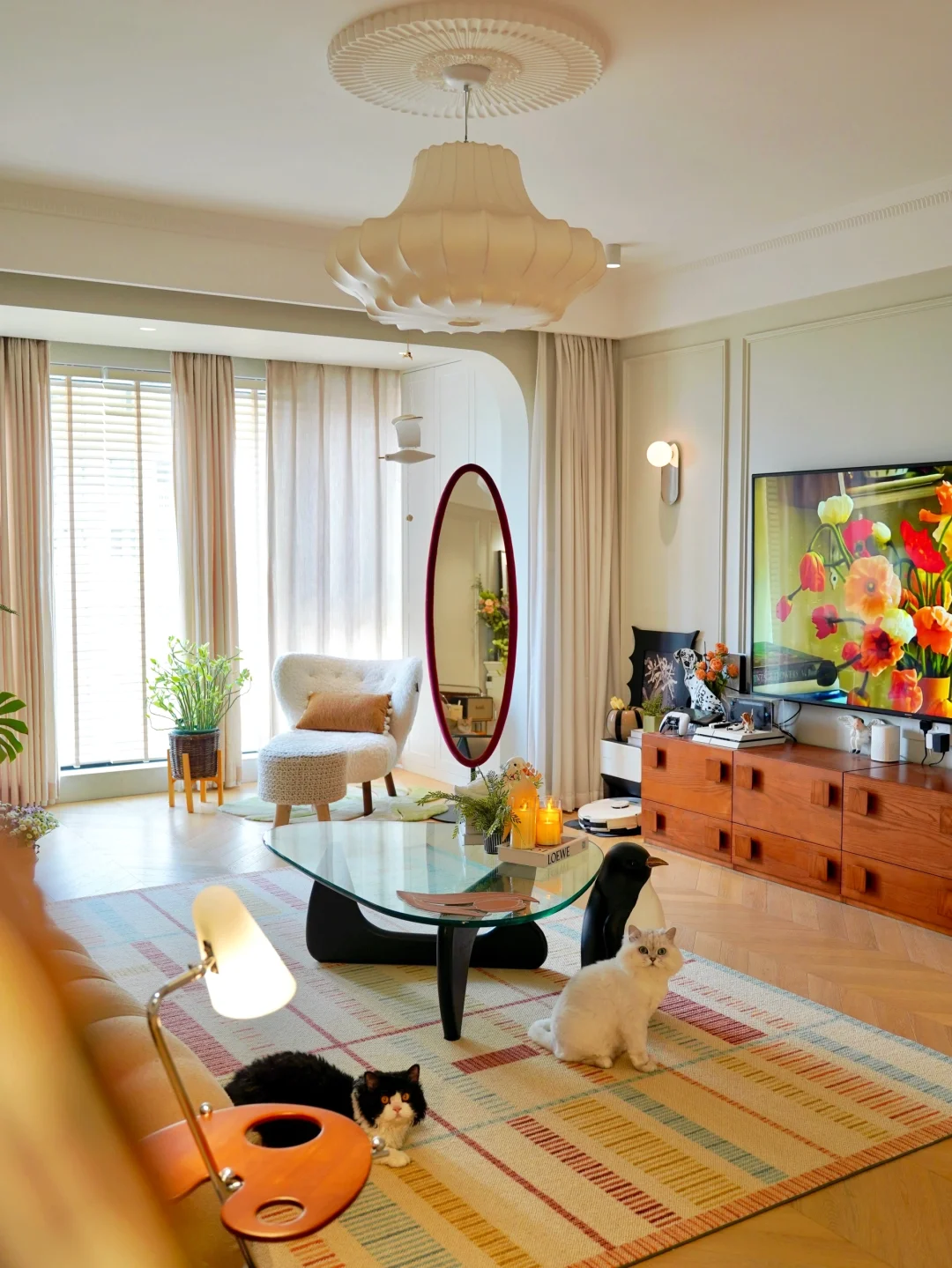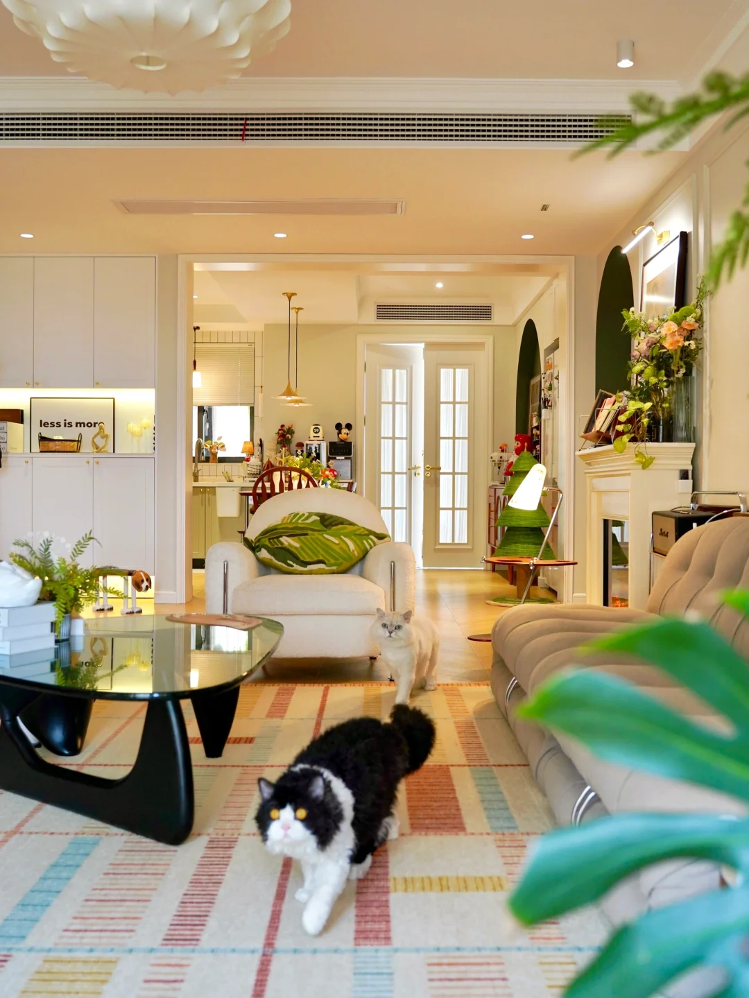 - 小家概况: 建筑面积141㎡|套内103.4㎡ 三室两厅两卫双阳台四叶草户型🍀 四口之家+三只毛孩子的治愈系小窝 开放式厨房+小岛台+ 餐厨客厅一体化 空间翻倍、通透感拉满 硬装+软装落地45W 每一寸空间都藏着我对生活的热爱 晴天的午后窝在客厅里看猫猫玩耍 岁月静好也不过如此~