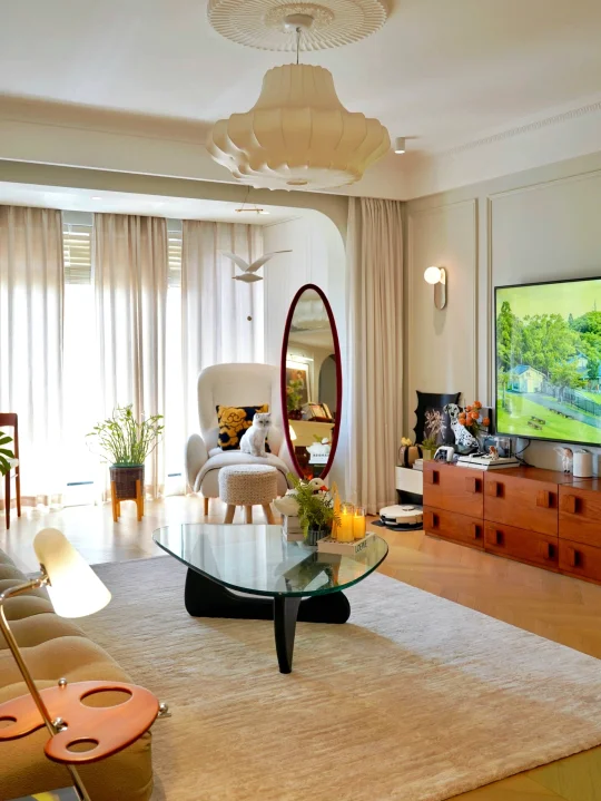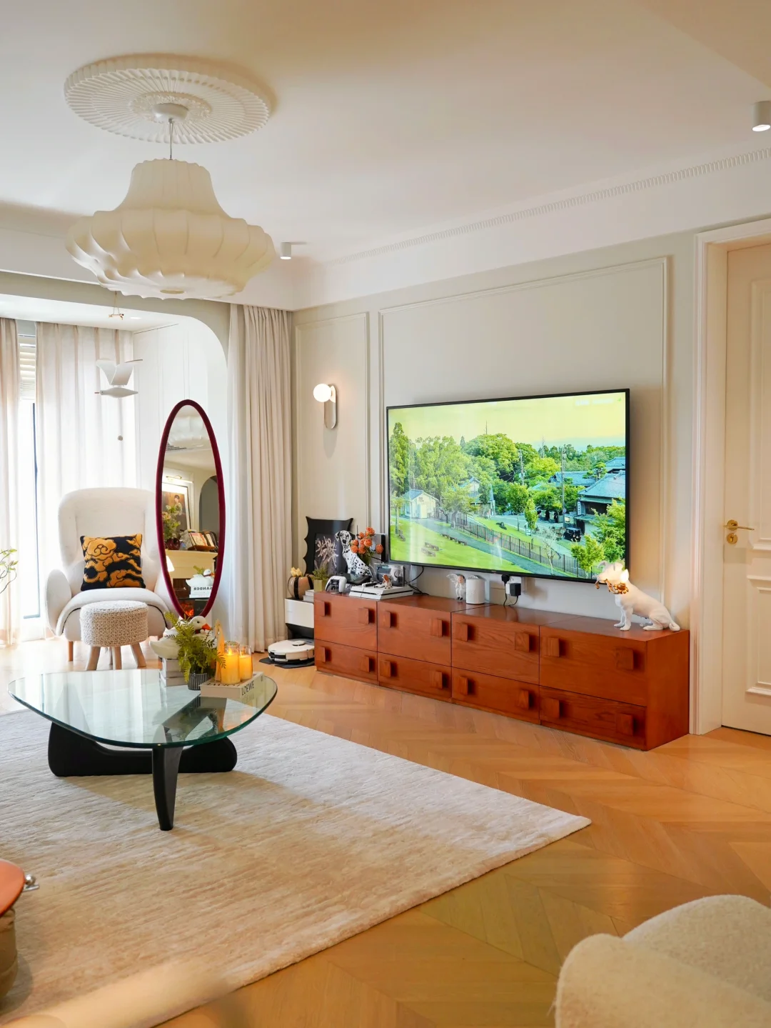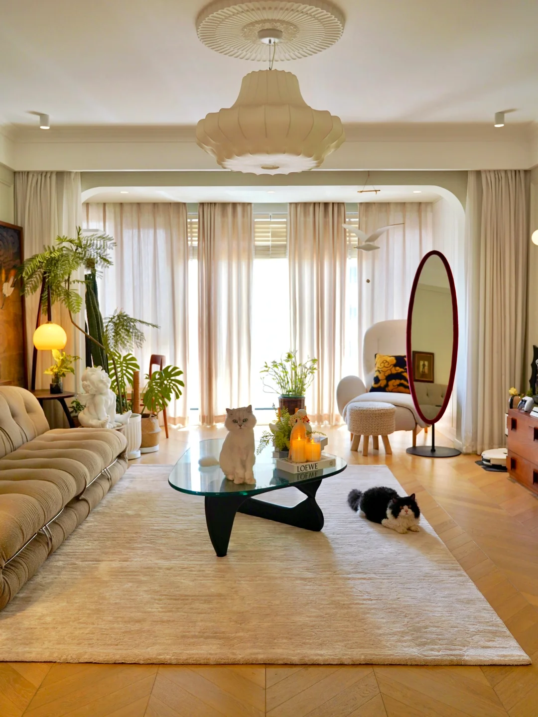 . 大风天宅家能有多幸福呢? 室外狂风大作,室内温馨幸福~ 这个当初只存在于想象中的梦中情家 一眨眼也已经入住三年了… 但是每次踏入家门我还是会被这个家惊艳到 装修时轻硬装重软装绿植点缀~ 低饱和度墙面搭配暖色调家具 单眼皮吊顶加明装射灯简约又大气 虽然家里有三只调皮的猫咪和两个熊孩子 家里依旧能做到东西多但不乱、温馨又舒适 连邻居都说不敢相信小县城能有这样的审美~