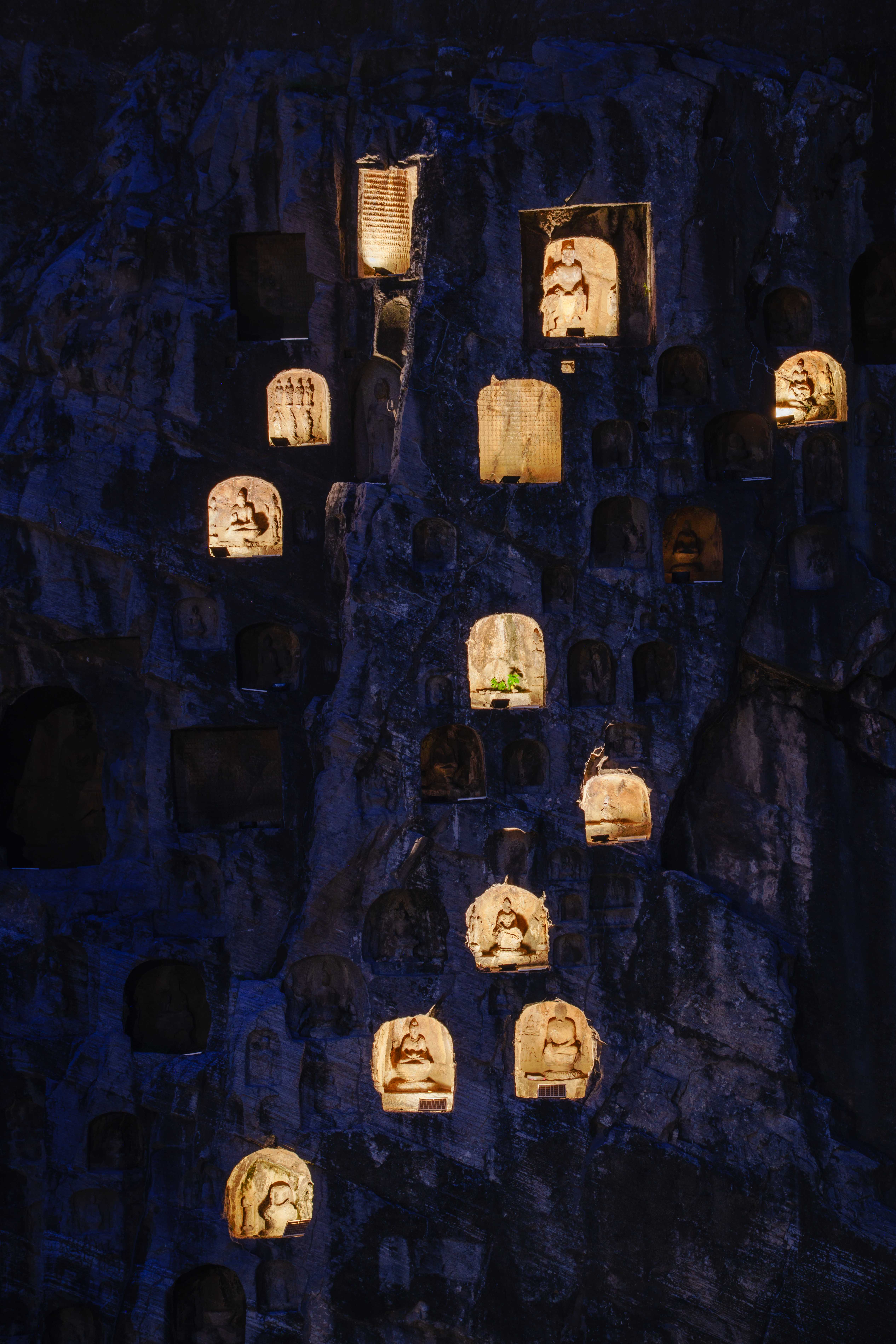 *在路上*龙门石窟...只记得来过,一查记录,哈,2006年五一!白驹过隙,再回首,已是两鬓苍苍...实际上,淡季也不淡,游人不少又碰上中学生研学,一下子把石窟填满。大新见缝插针,拍拍的也算厉害...龙门夜游,卢舍那大佛更显魅力...奉先寺卢舍那大佛:这是龙门石窟规模最大、艺术最精湛的摩崖型群雕。主佛卢舍那大佛通高17.14米,以神秘的微笑著称,被誉为“东方蒙娜丽莎”。据记载,武则天曾为建造捐助脂粉钱两万贯,大佛的容貌也常被认为融入了女皇的形象 ...河南洛阳...