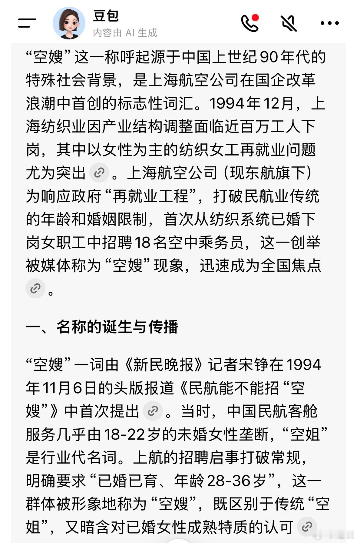 春秋航空开招已婚已育空嫂 看评论很多人都对“空嫂”称呼有争议,用豆包查了一下,这个词不是春秋航空提出来的,第一次出现是在上世纪90年代。