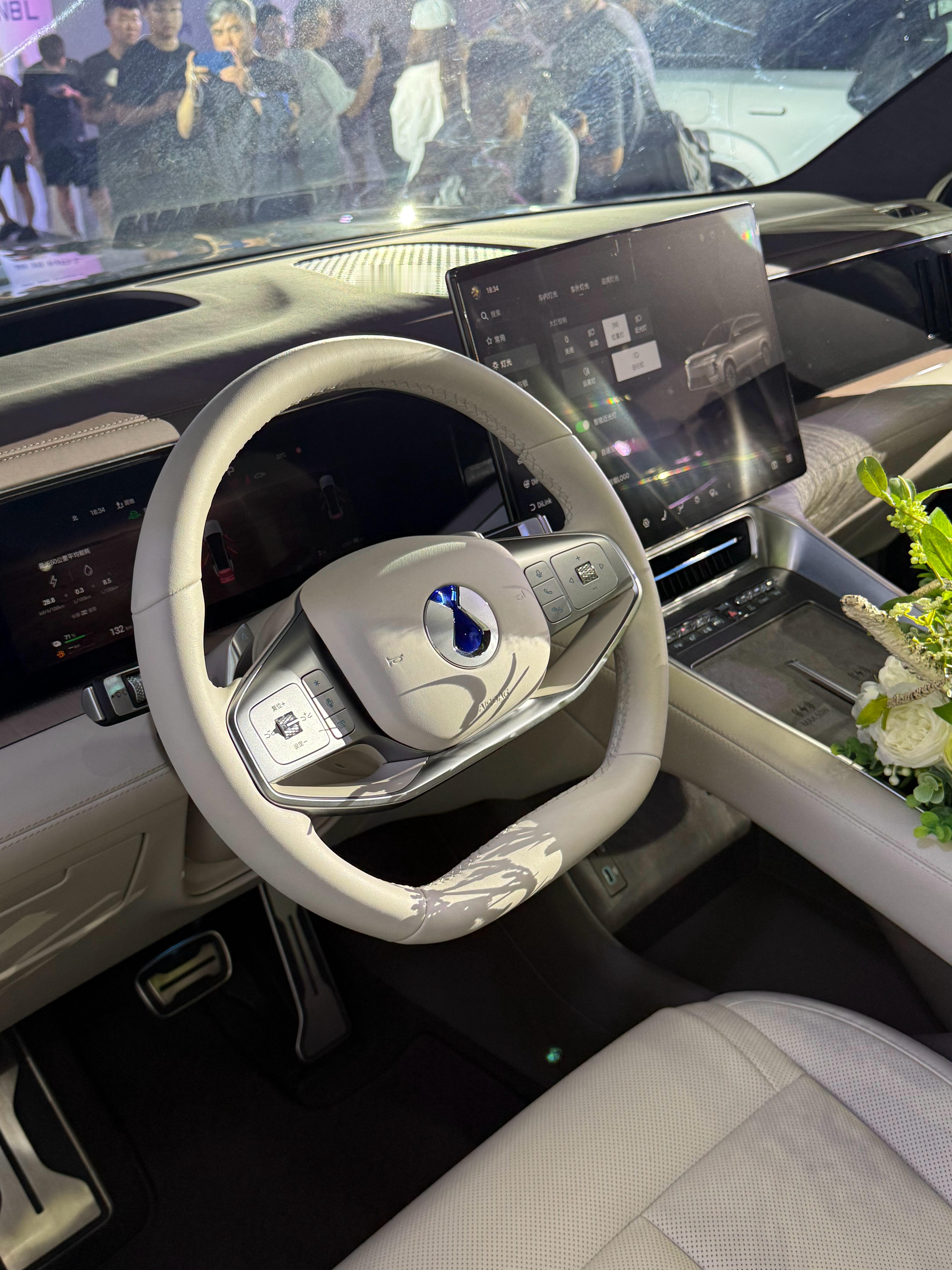安全更是狠:210km/h鱼钩测试不翻车、180km/h爆胎照样稳,加上2000兆帕高强钢笼式车身,稳得像“家庭装甲车”。动力也强得离谱,三电机、零百3.9秒,纯电230公里、综合续航1300公里。