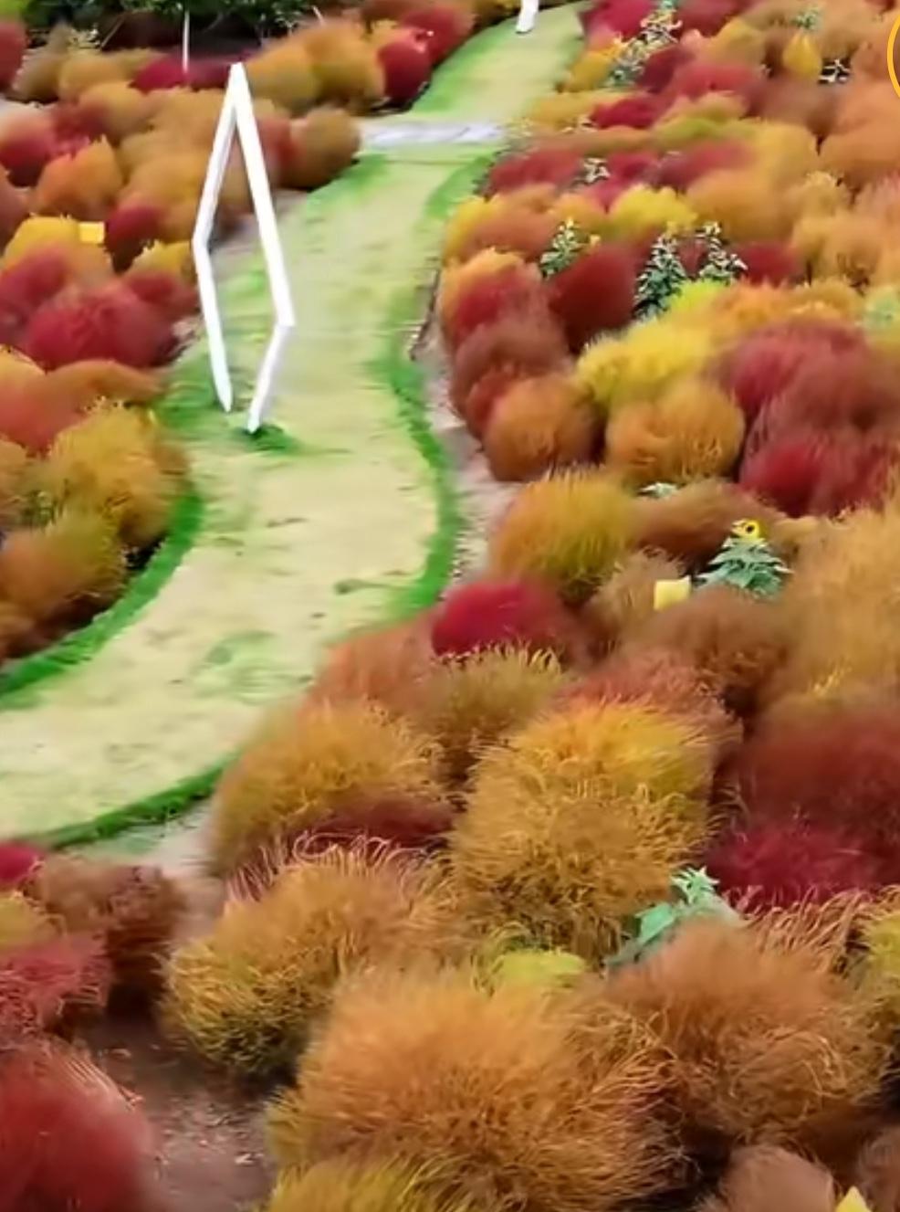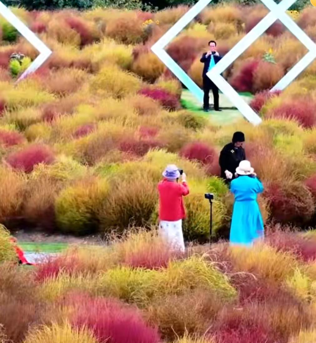 秋姑娘一来,宁波植物园便闹腾开了! 数千平方米的“毛毛球”地肤,一个个急红了脸,圆滚滚、胖乎乎地挤作一团,成了秋天里最暖和的风景。 打天上一瞧,这些圆球球排得那叫一个齐整,红绿相间,像给大地披了张花花毯子,实在壮观。 这地肤啊,咱老百姓也叫它“扫帚苗”,模样憨萌,个头不高,分支却多,活像一个个扎堆儿唠嗑的胖娃娃,惹得游人纷纷举起手机,把这秋日里的热闹劲儿定格回家。 秋 你来打卡了吗?