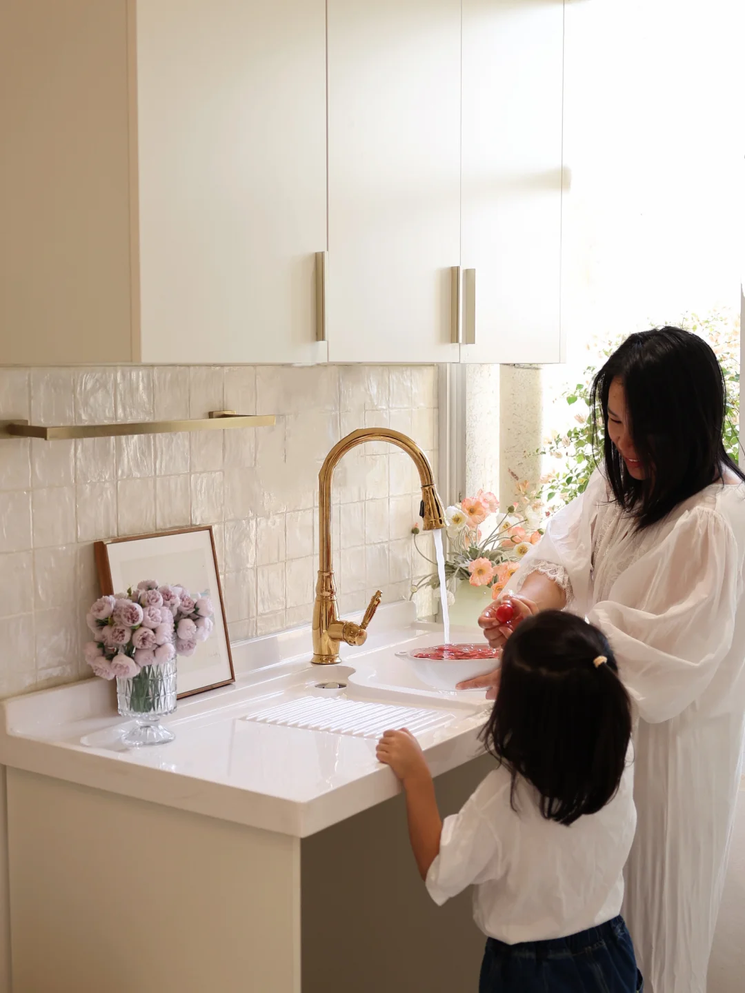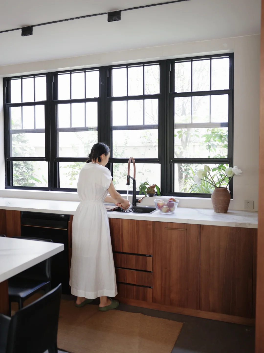 孩子在浴缸玩水,我在淋浴、老公在厨房刷碗
