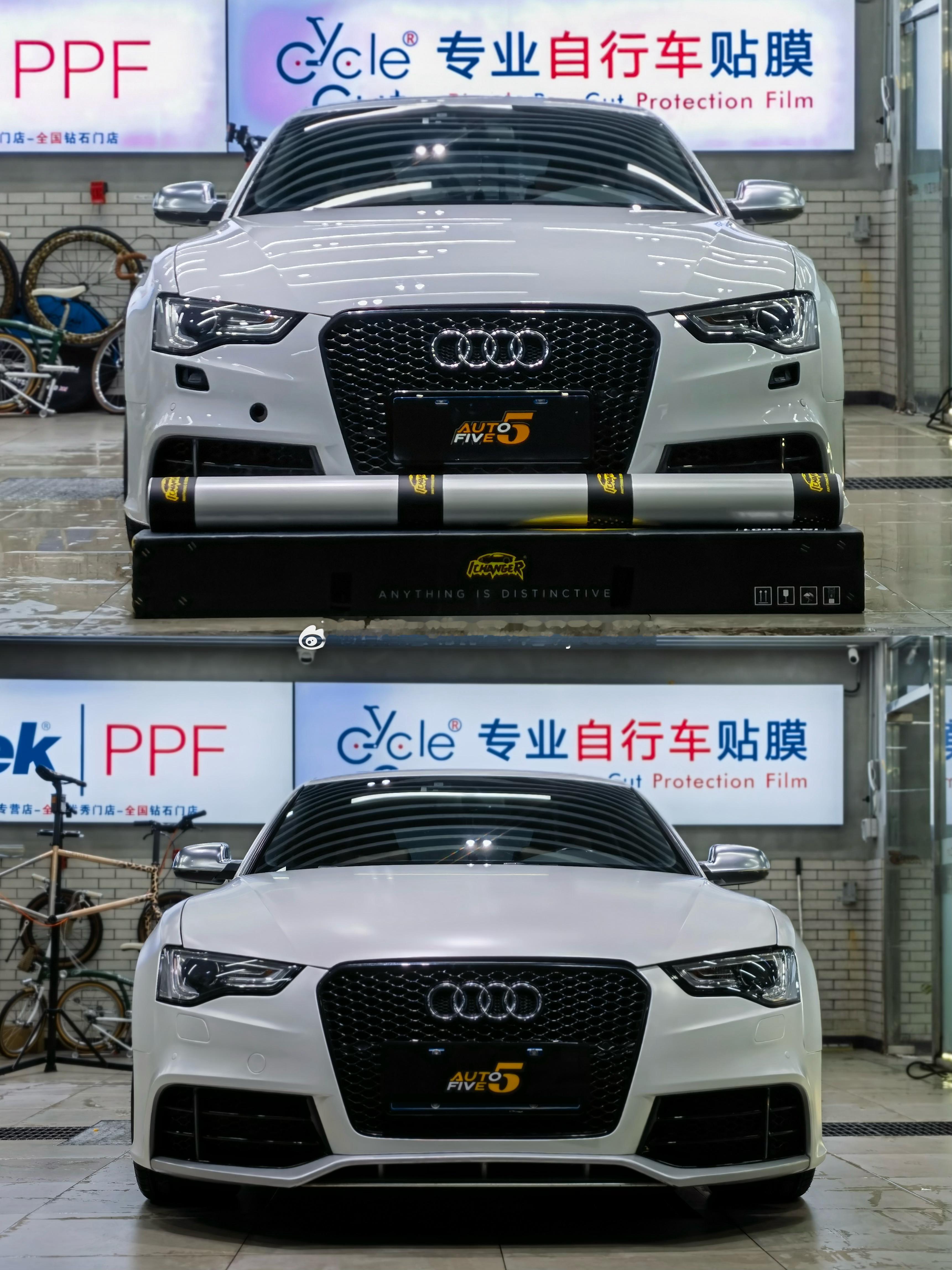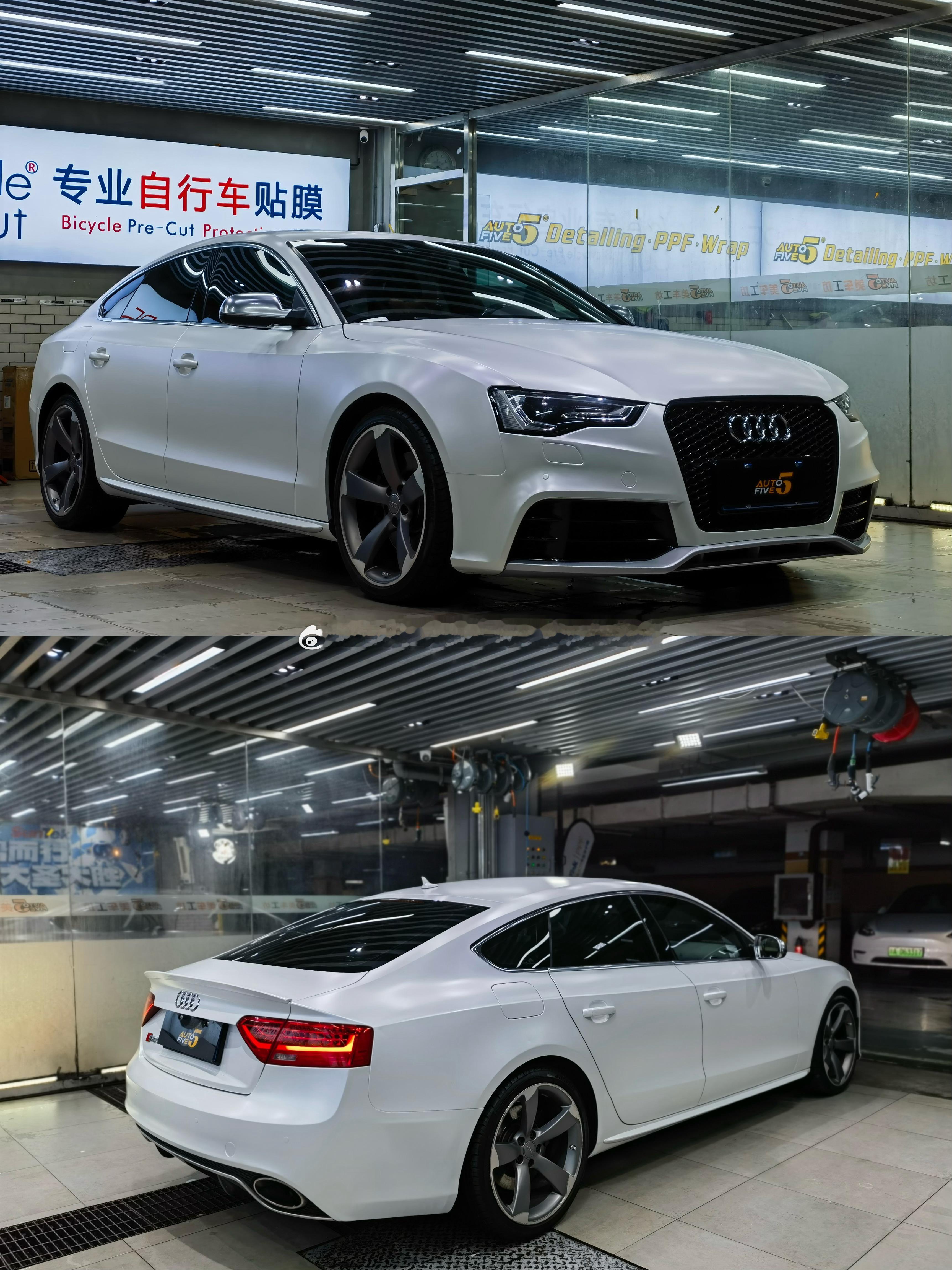 陶瓷白真好看贴完一台、又来一台~奥迪S5华丽变身、焕然一新ICR全车改色施工完