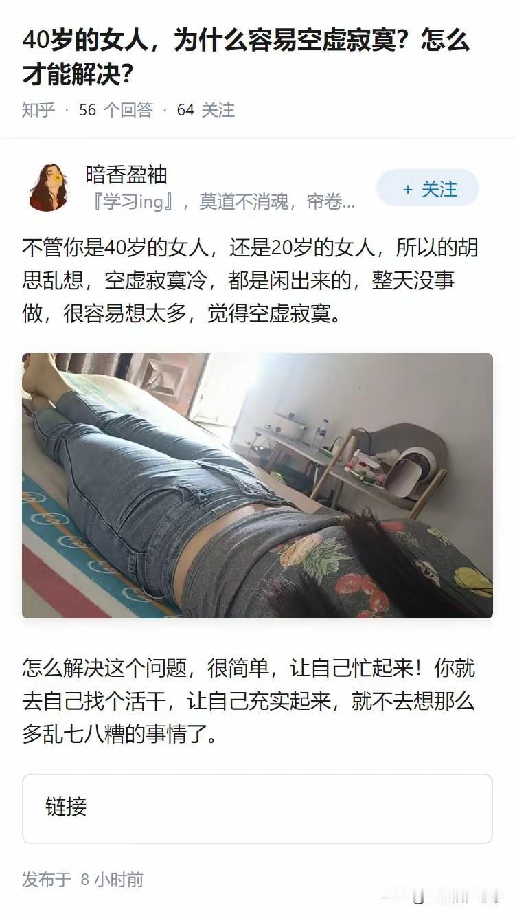 关于寂寞:找个异性陪伴,何尝不是一种温暖的选择 有人觉得寂寞是“闲”出来的,忙碌能解决一切。但对于不少人来说,心灵的空缺,有时真的需要一份真挚的陪伴来填补。 40岁的女人,经历过生活的种种,更懂得情感共鸣的可贵。当夜深人静时,有一个可以分享心事、互相扶持的异性伴侣,那种被理解、被牵挂的感觉,是忙碌无法完全替代的。 当然,这不是说要为了摆脱寂寞而随便找个人。而是在真诚的交往中,寻找那个能与你灵魂契合的人。这种陪伴,是精神上的共鸣,是生活里的依靠,能让你在人生的旅途中,不再觉得孤单。 所以,当寂寞来袭时,若能遇到一个对的人,携手相伴,何尝不是一种治愈寂寞的美好方式呢?孤独真相 单身女人独居 单身孤独感