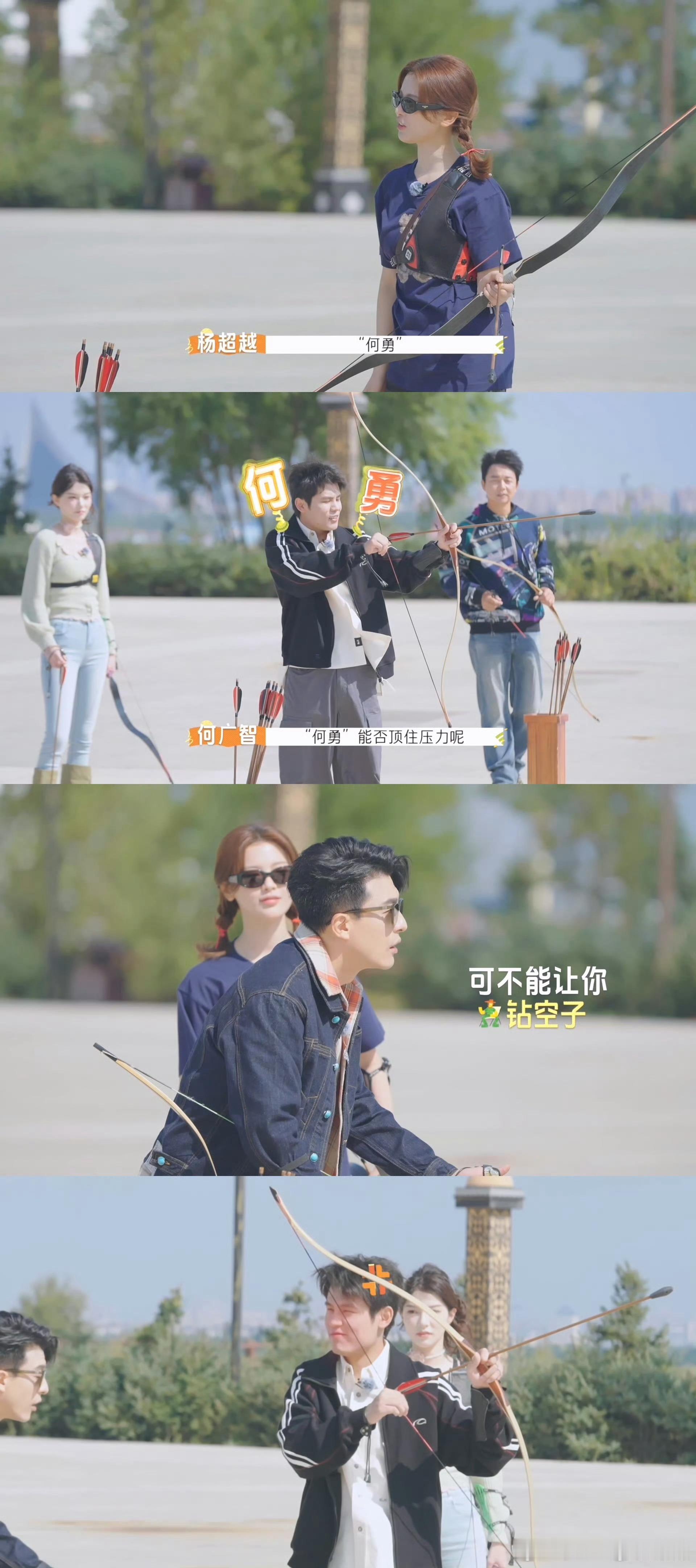 这下给何广智装了把大的 何广智在《非来不可3》射箭场太会装!杨超越先喊“何勇”预热,孙艺洲纠正站姿搞干扰,他偏往后退一格,嘴上说加难度,结果首箭就中4分,现场欢呼不断,前两期连败全翻篇!