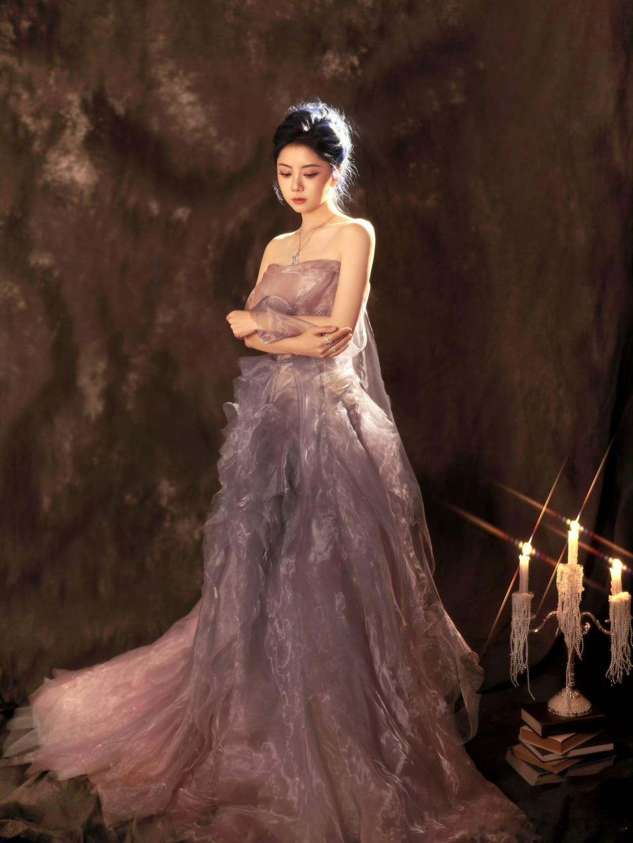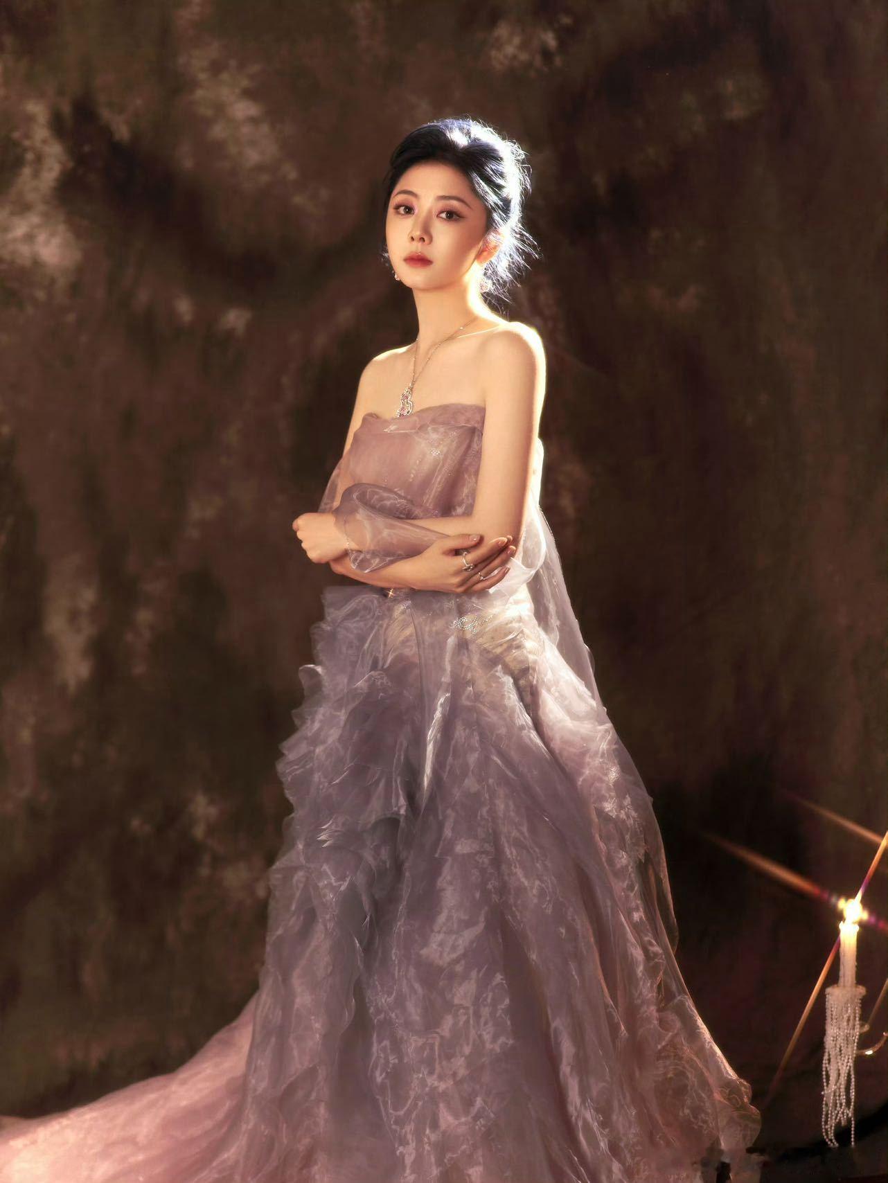 谭松韵紫色纱裙谭松韵美得像油画 淡紫纱裙配甜妹笑容,太绝了!谭松韵的紫色抹胸纱裙自带柔光,站在光影里,优雅又灵动,说一句“油画美人”不过分吧~
