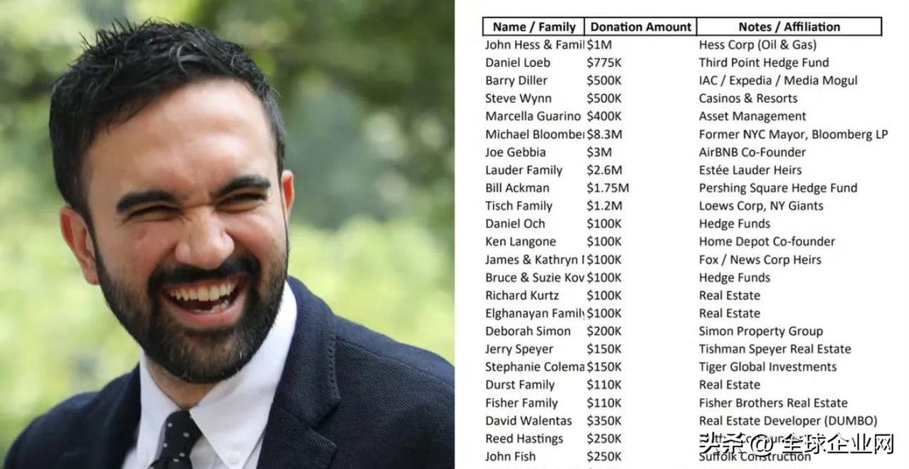 共有26位亿万富翁投入超过2200万美元,试图阻挠佐赫兰·曼达尼的民主党提名或一般选举胜利。 曼达尼作为民主社会主义者,其政策(如租金冻结、免费公交和全民托儿)被视为对富豪利益的威胁。 捐款者名单中包括迈克尔·布隆伯格(Michael Bloomberg)、比尔·阿克曼(Bill Ackman)、沃尔顿家族成员(Walton family)、 史蒂夫·永利(Steve Wynn)及劳德家族(Lauder family) 等知名富豪。 这些资金被用于支持多个政治行动委员会(PAC),意在影响纽约市长选举走向。目前,双方竞选团队均未就此发表评论。