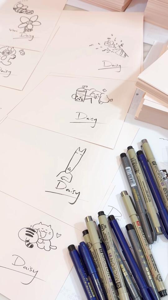 为第二本书拼命亲签中,是的它快来了!目前还没有拿到样书,拿到后会给大家剧透一小下~~ 这次亲签真的量大管饱除了废手,薅vivi和我一起画了200+的签绘(想起来就画一张数量很随机…)签完后会速速更新的[扯脸H]