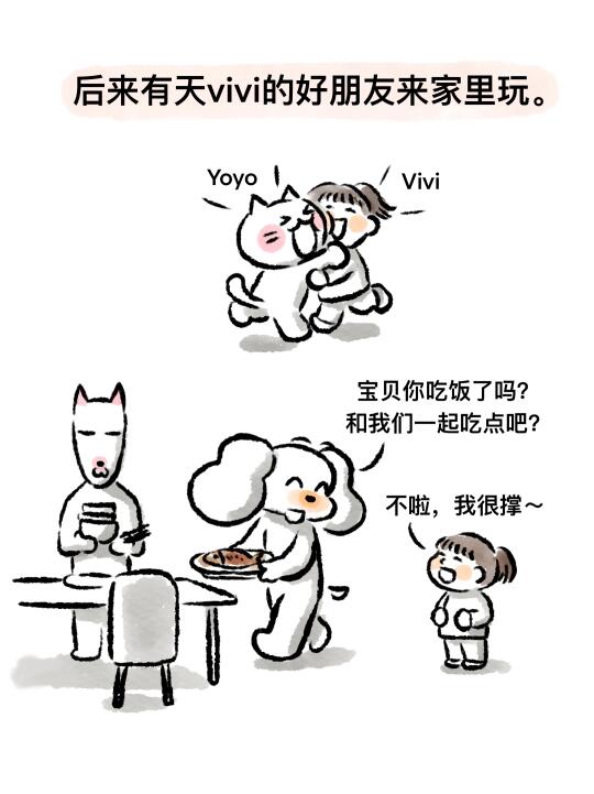 估计这种不留客人吃饭的传统文化就像咱们长辈喜欢给客人死命塞饭差不多,年轻人也不怎么遵循了,另外希望yoyo长大以后不要记成曾经在vivi家没有饭吃😅