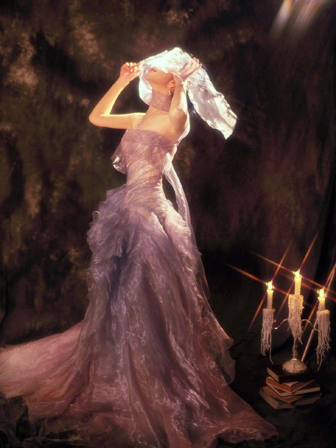 谭松韵紫色抹胸纱裙 谭松韵紫色抹胸纱裙,谭松韵腾讯视界大会造型图,完全就是优雅复古的油画美人啊~