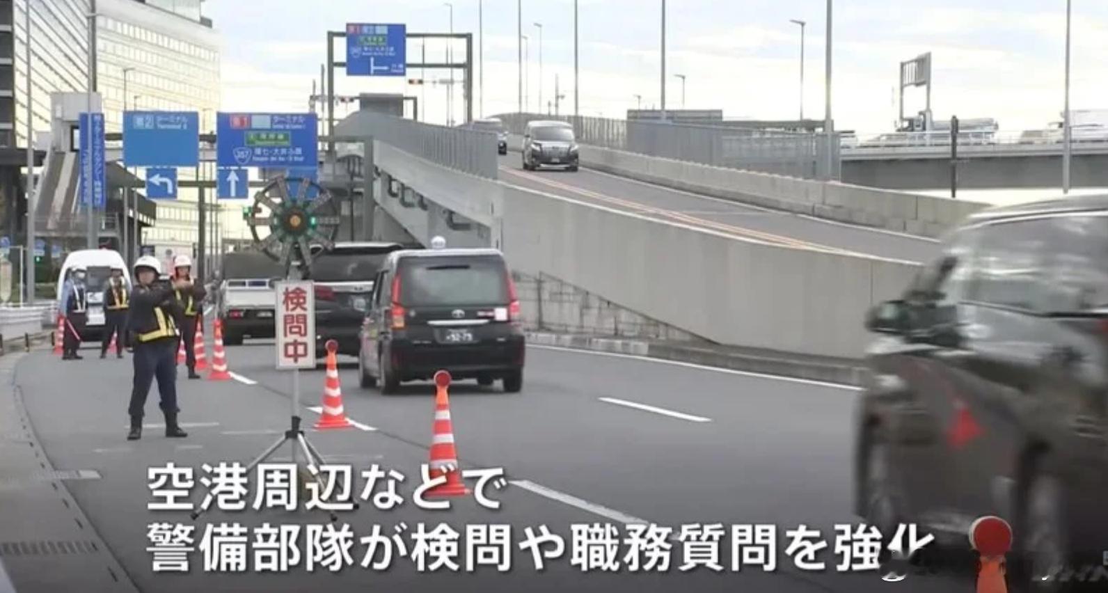 图3:特朗普预计27日下午抵达羽田机场,展开访日行程至29日,日本警方在机场周边执行严格检问。图/截自TBS NEWS DIG Powered by JNN在YT的影音