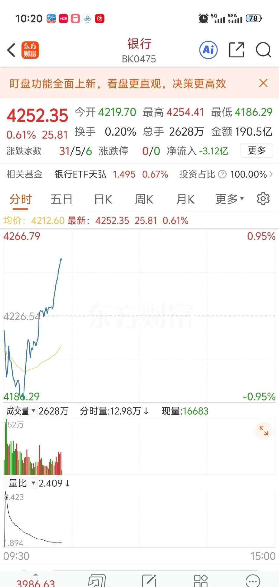 没想到吧,带领大盘破4000的,非科技是银行。 并且之后带领破指数的都是银行。国家有大动作。举个例子,湖北地方需要国企产业证券话。啥意思?股市涨了才能体现政绩,并实现融资功能。谁评估?银行。国家宏观导向,银行无风险业务量增加啊。不赚钱谁赚?