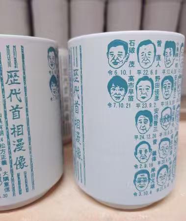 这叫“首相漫像汤吞”,它的销量与首相的受欢迎程度成正比。据说,销量最高的是小泉纯一郎,曾经狂卖30万余个。日本上一任首相石破茂的销量4000余个,可以说非常惨淡!高市早苗当选首相后的预定数已达5000个,超过了石破茂的4000个,但还不及岸田文雄的6000余个!