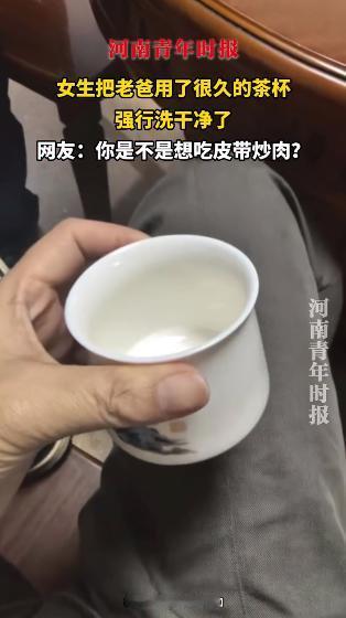“闯出大祸了!”近日,福建,一女孩看见自己老爸的茶杯喝了很久都不洗,觉得实在是太不卫生了,于是直接用清水费了很大功夫才把茶杯洗干净,没想到网友看到这一幕却纷纷表示女儿要“挨打”了! “这茶杯都快长毛了!”女孩一边嘀咕着,一边拿起父亲常年用的茶杯走向厨房,准备给它来个“大清洗”。可她没想到,自己这一番“孝心操作”,竟被网友们一致认为要挨打了。 当时女孩突然注意到父亲茶几上那个用了很多年的老茶杯,深褐色的茶渍几乎覆盖了整个内壁,茶垢厚得都能反光。她一脸嫌弃地端着杯子进了厨房,拿起钢丝球、清洁剂和清水,足足擦了十几分钟,才把那层厚厚的茶垢给磨掉。 最后一冲,杯子亮得像新买的一样,她还自豪地拍了个小视频发网上,配文:“老爸的‘宝贝杯’,终于被我洗干净了。” 结果,评论区一片哗然。网友们不是夸她勤快,而是齐刷刷地留言:“完了,闯祸了!”、“你爸估计气得连茶都喝不香了!”、“你洗掉的不是茶垢,是他多年泡出来的‘老味儿’!” 其实在不少爱喝茶的中老年人眼里,一个茶杯的“茶垢”,并不是脏,而是岁月的痕迹,是“养杯”的结果。尤其是爱喝乌龙茶、铁观音、普洱的人,更讲究一个“杯有茶魂”。他们相信,常年用来泡茶的杯子会“吸香养性”,越用味道越醇。 这件事越传越广,不少网友甚至分享了自己的亲身经历:有人说自己小时候也洗过爷爷的紫砂壶,结果被训了半小时;也有人说自己曾给老爸换了个新茶杯,结果被念叨到现在。 对于不懂茶文化的人来说,这似乎有些不可理喻,不洗的杯子能干净吗?可对那些喝了一辈子茶的老人来说,那层看似“脏”的茶垢,才是生活的“香”。 女孩出于对父亲健康的担心,想让杯子干净一点;但从父亲那一辈的角度看,她却“破坏”了他们几十年积累下来的茶香。两代人对“干净”的理解不同,对“生活习惯”的认知也不同。 而对女孩来说,她生活在快节奏的城市,讲究效率和整洁。她看到的,是茶垢带来的“卫生隐患”;而父亲看到的,是那杯茶带来的“生活安稳”。这就像两种人生观的碰撞,年轻人希望世界干净利落,老人希望生活延续如常。 有网友说得很妙:“女儿洗的是杯,父亲失的是岁月。” 信息来源: 观象视频丨女生把老爸用了很久的茶杯强行洗干净了,网友:你是不是想吃皮带炒肉? 文丨小王 编辑丨史叔