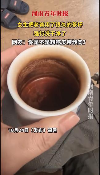 “闯出大祸了!”近日,福建,一女孩看见自己老爸的茶杯喝了很久都不洗,觉得实在是太