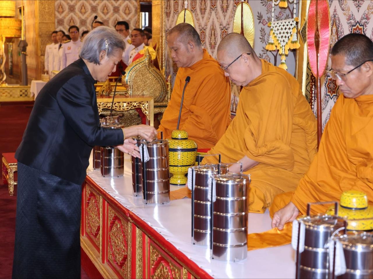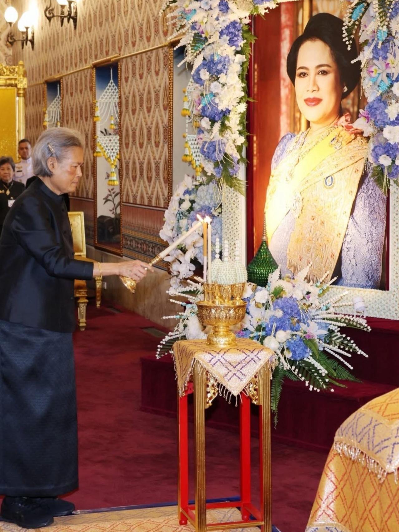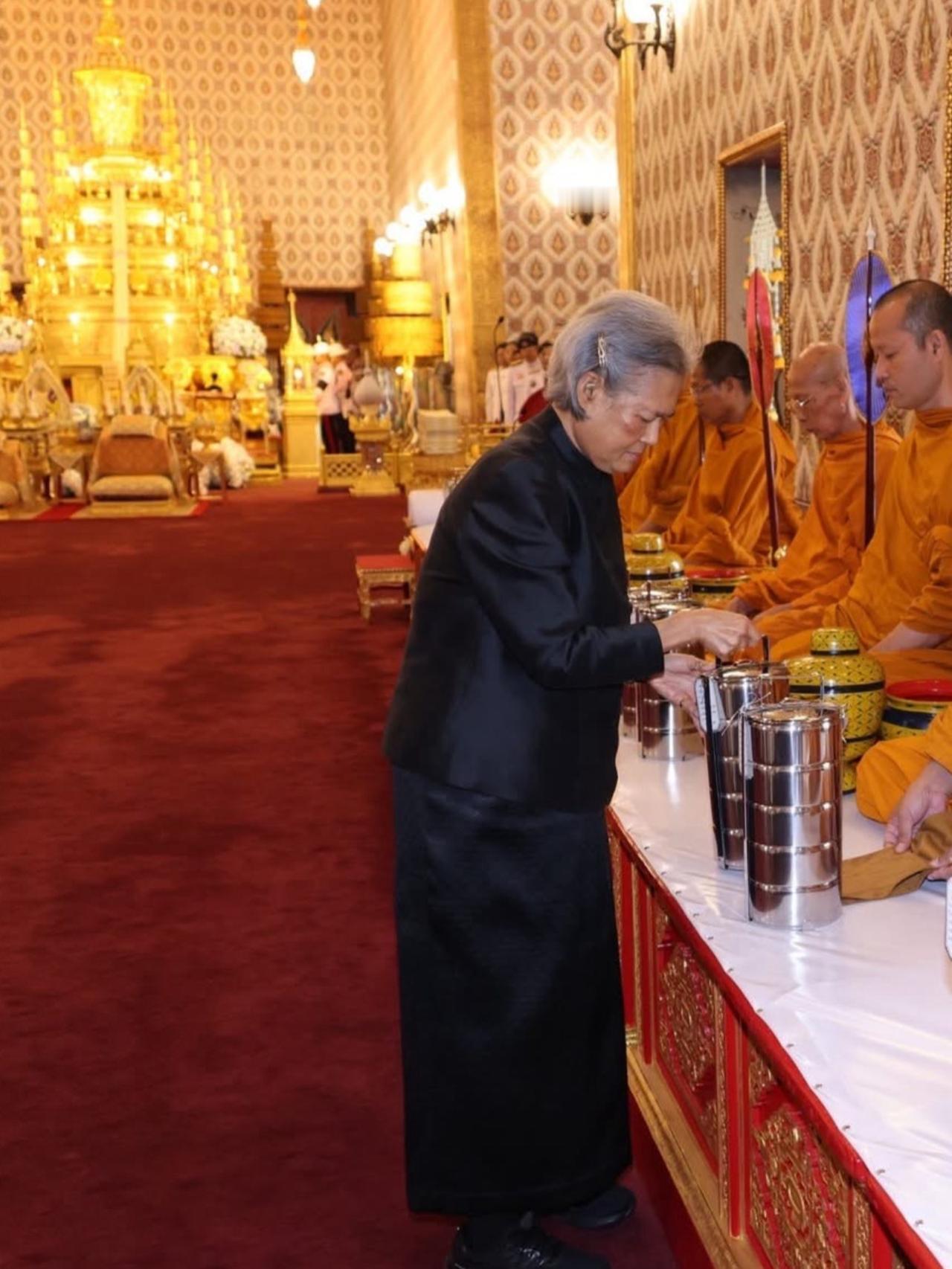 诗琳通公主祭拜母亲,满头白发令人心疼 10月27日,诗琳通公主殿下,于大皇宫杜斯特玛哈普拉萨王座大厅,为已故诗丽吉王太后主持功德法会,场面庄严肃穆。 值此之际,国王陛下于王室瓮前敬献花圈。盛放太后遗体的大型金瓮置于九层白伞下的金色宝座,周围阳伞、金银树环绕,尽显尊崇。 此次,泰国历史上首次授予王后最高级别王室荣誉,与君主比肩,足见诗丽吉王太后地位之高、贡献之大。国王陛下还仁慈准许昼夜进行佛教诵经仪式,安排僧侣享用早午饭、午饭,百日斋期间演奏佛乐,以虔诚之心缅怀太后,寄托无尽哀思与敬意。