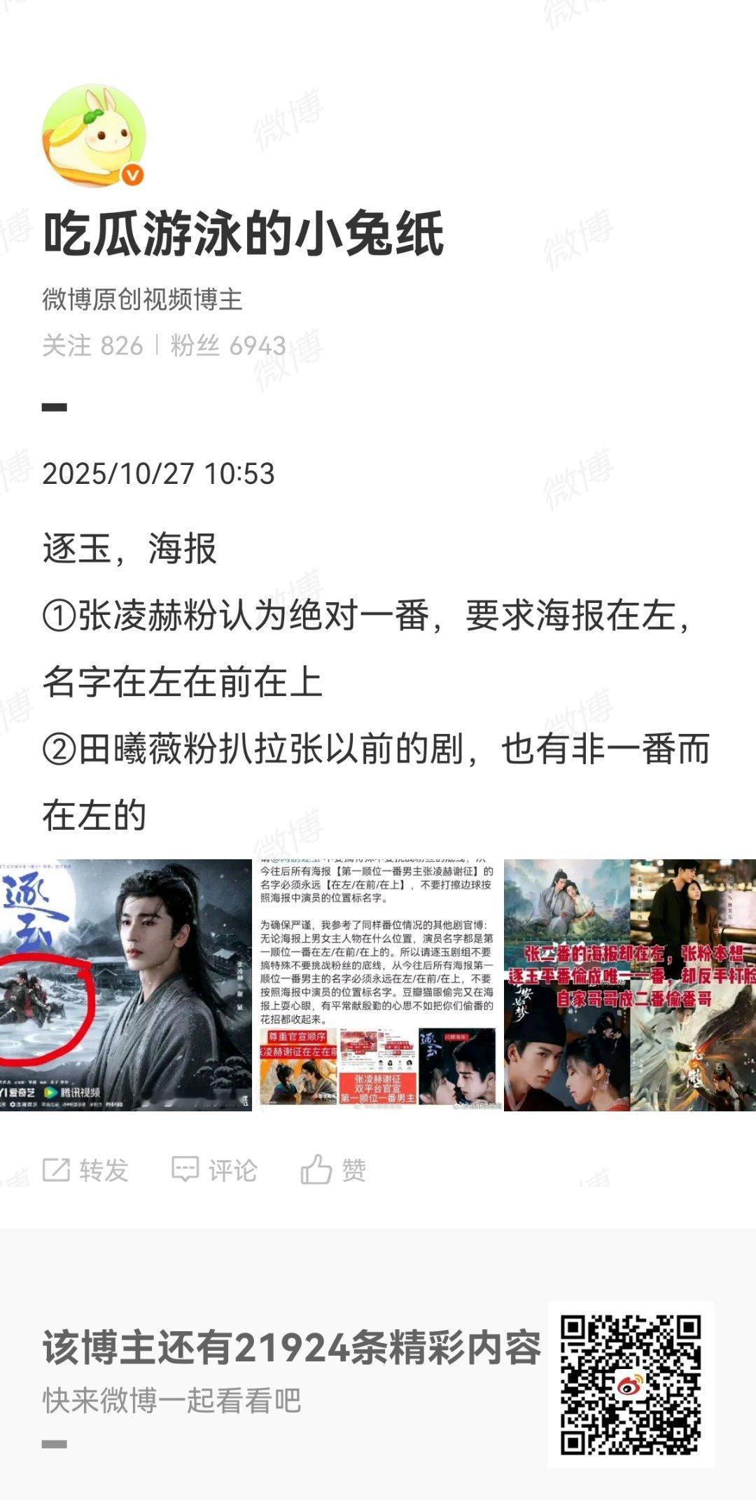 ❻逐玉,张凌赫不满双人海报排位,要求绝对一番,在左在前在上,田曦薇粉坚持按照官宣平番,张想抢番 图9
