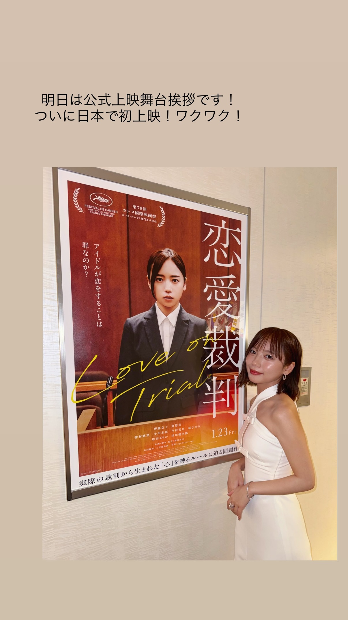 齊藤京子「第38回東京国際映画祭、オープニングイベントにてレッドカーペットを歩かせていただきました!ありがとうございました🤍『恋愛裁判』1月23日公開です!お楽しみに☺︎」
