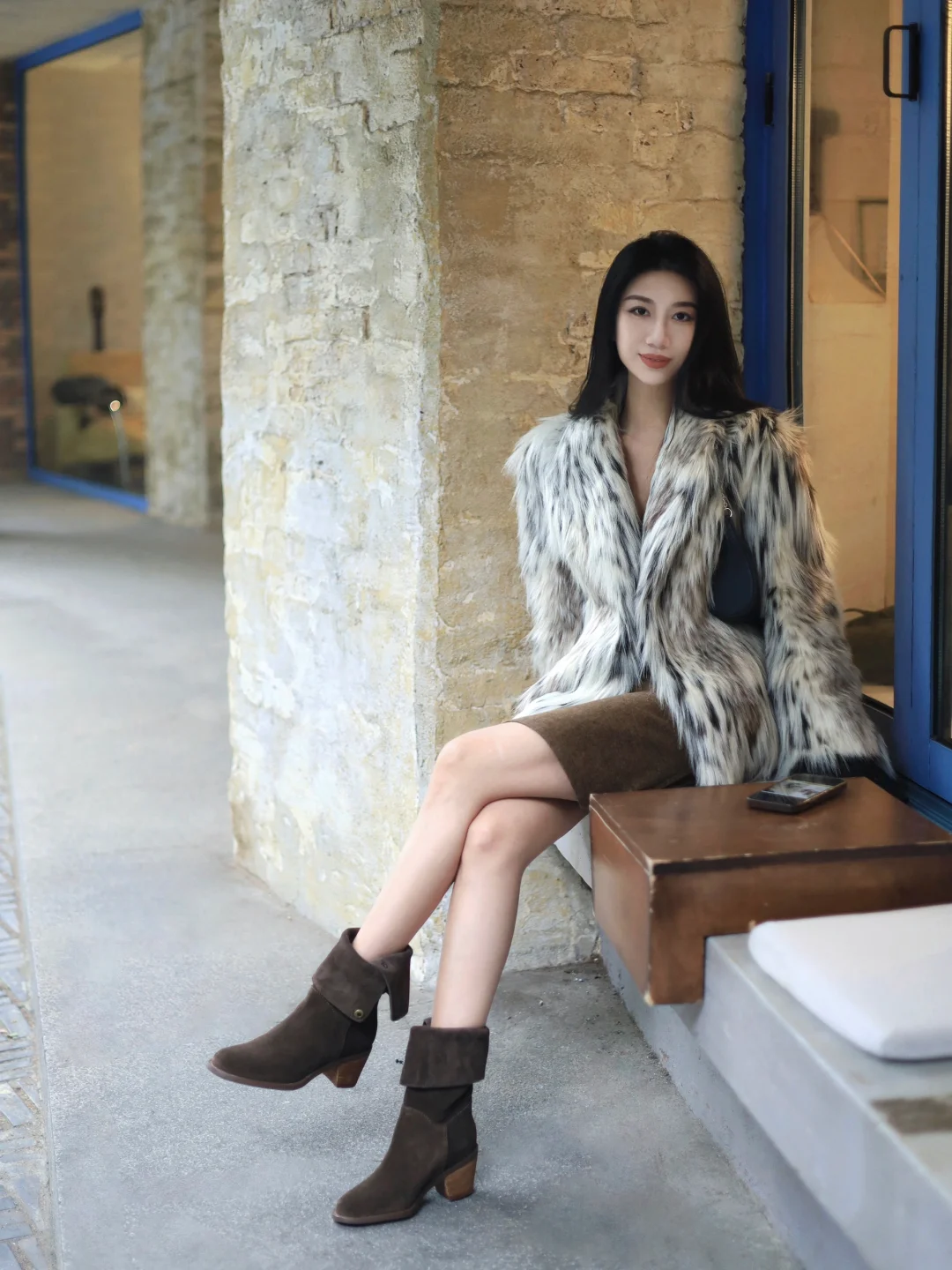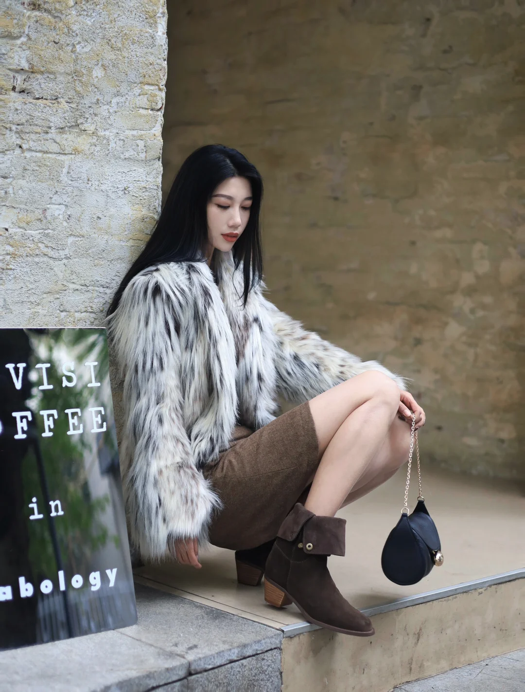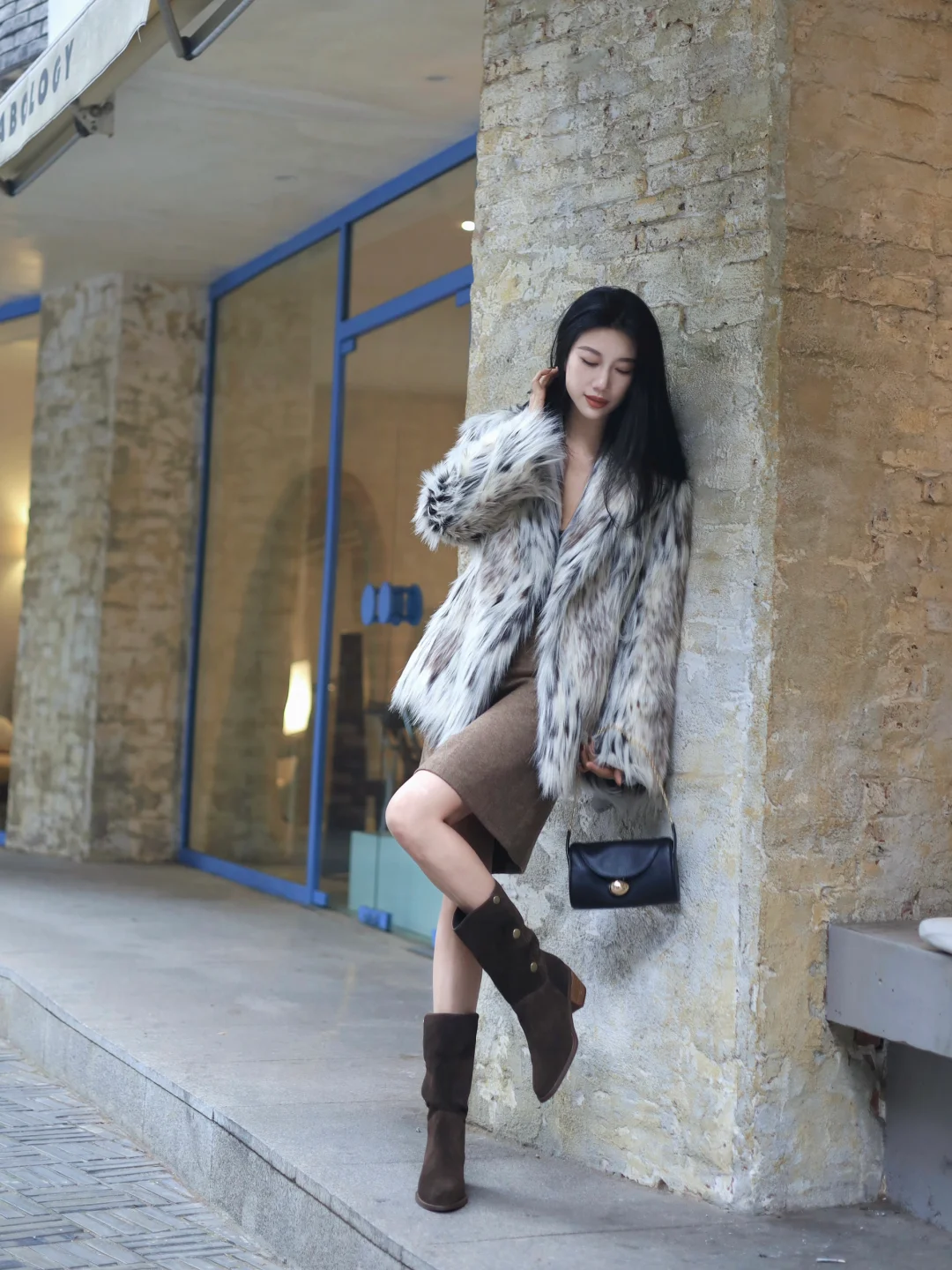 皮草外套➕西部靴毛茸茸的复古时髦感