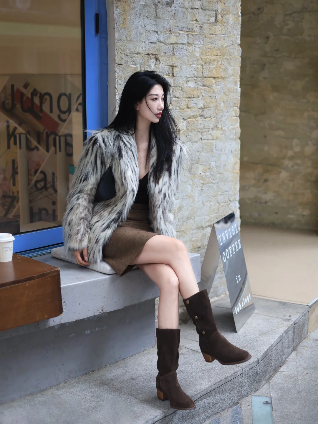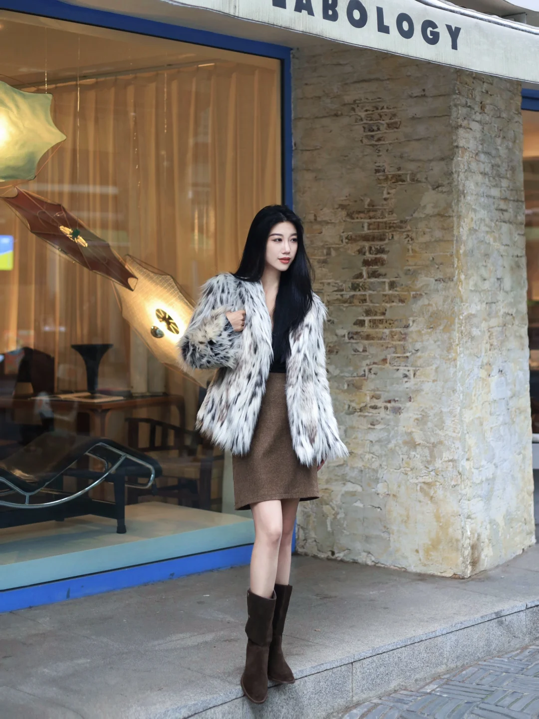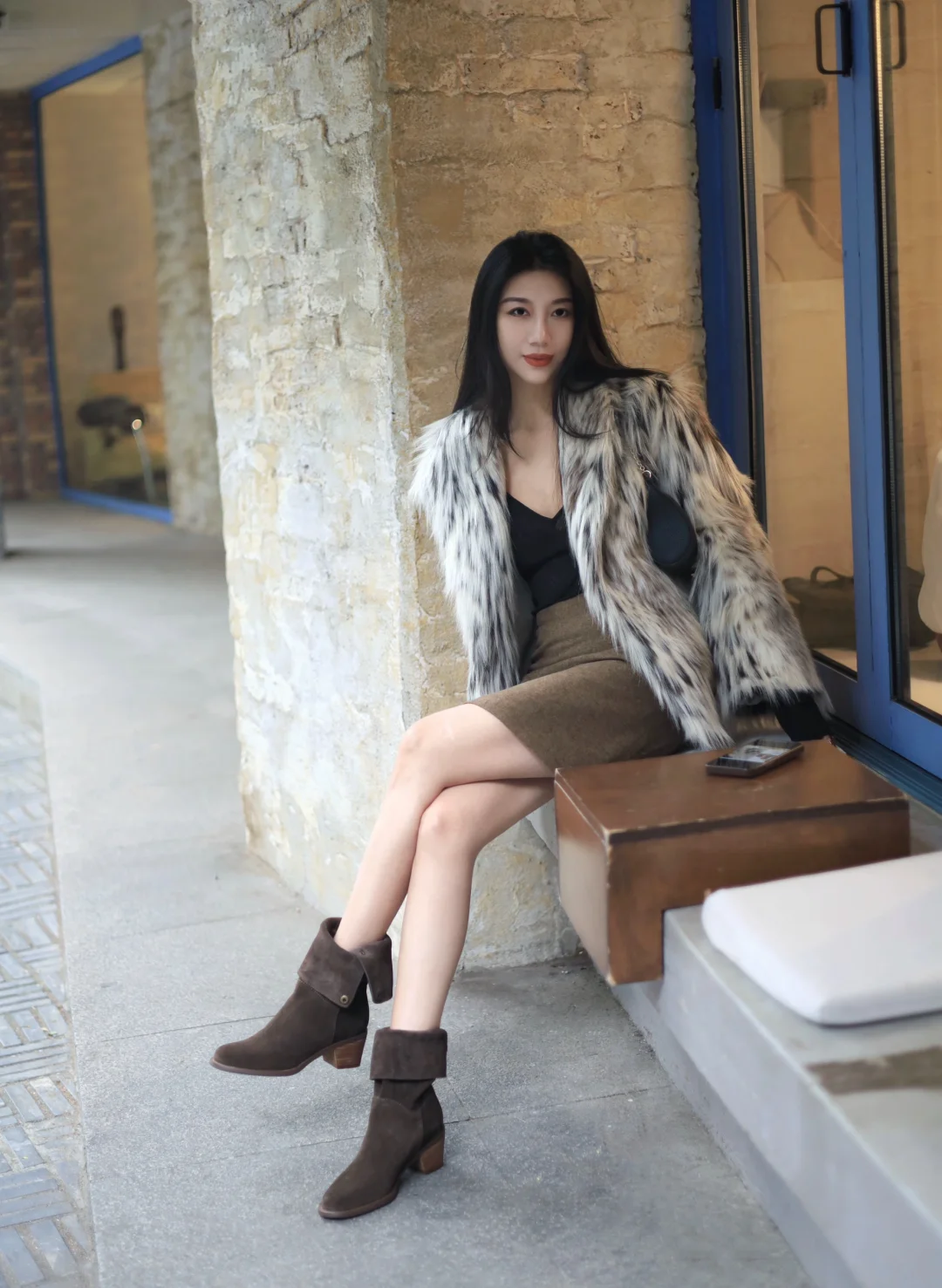 皮草外套➕西部靴毛茸茸的复古时髦感