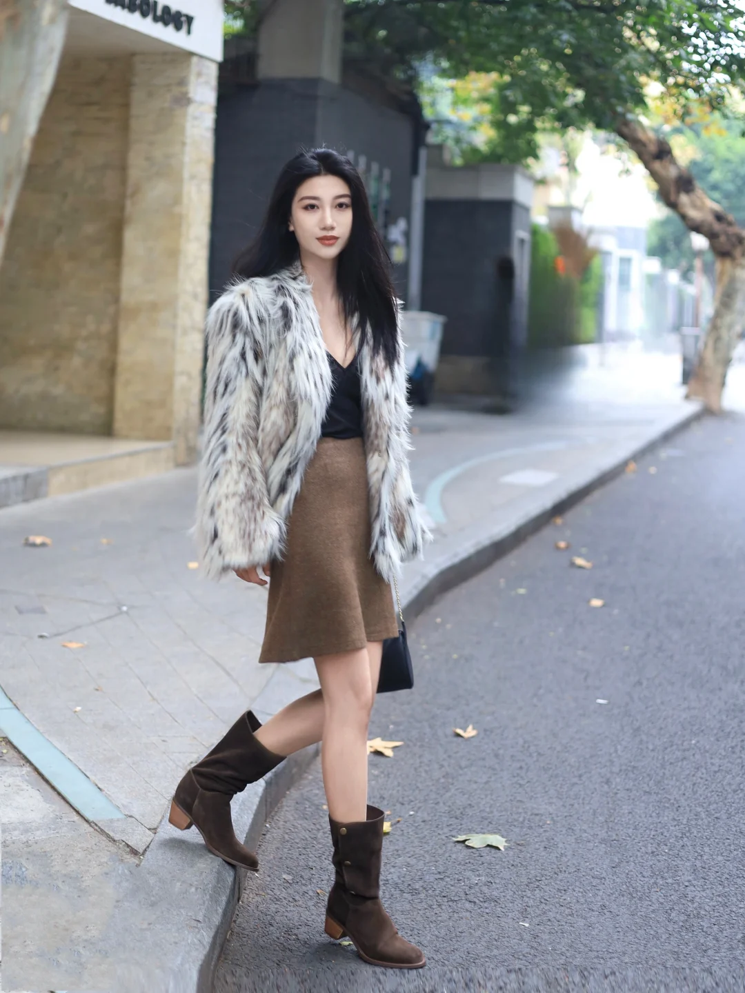 皮草外套➕西部靴 松弛的复古时髦感 随着气温骤降 冬季的气氛更浓了 厚外套和羊毛裙可以穿起来啦 豹纹的环保皮草 有点野性 其实穿起来并不夸张 搭配同色系的羊毛裙 有点野性的时髦同时又有小女人味道 搭配复古西部靴 增添一丝休闲的时髦感 三种穿法可以解锁 自由松弛 咖啡色浓郁复古 和秋冬基础色相得益彰 真的是自带氛围感的穿搭圣品