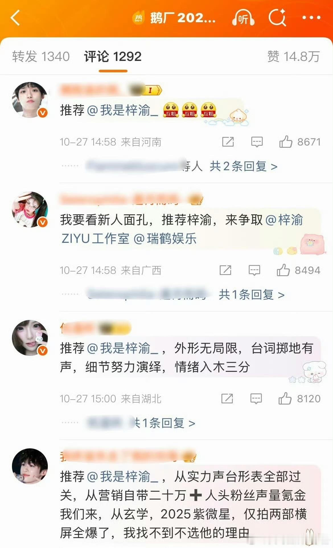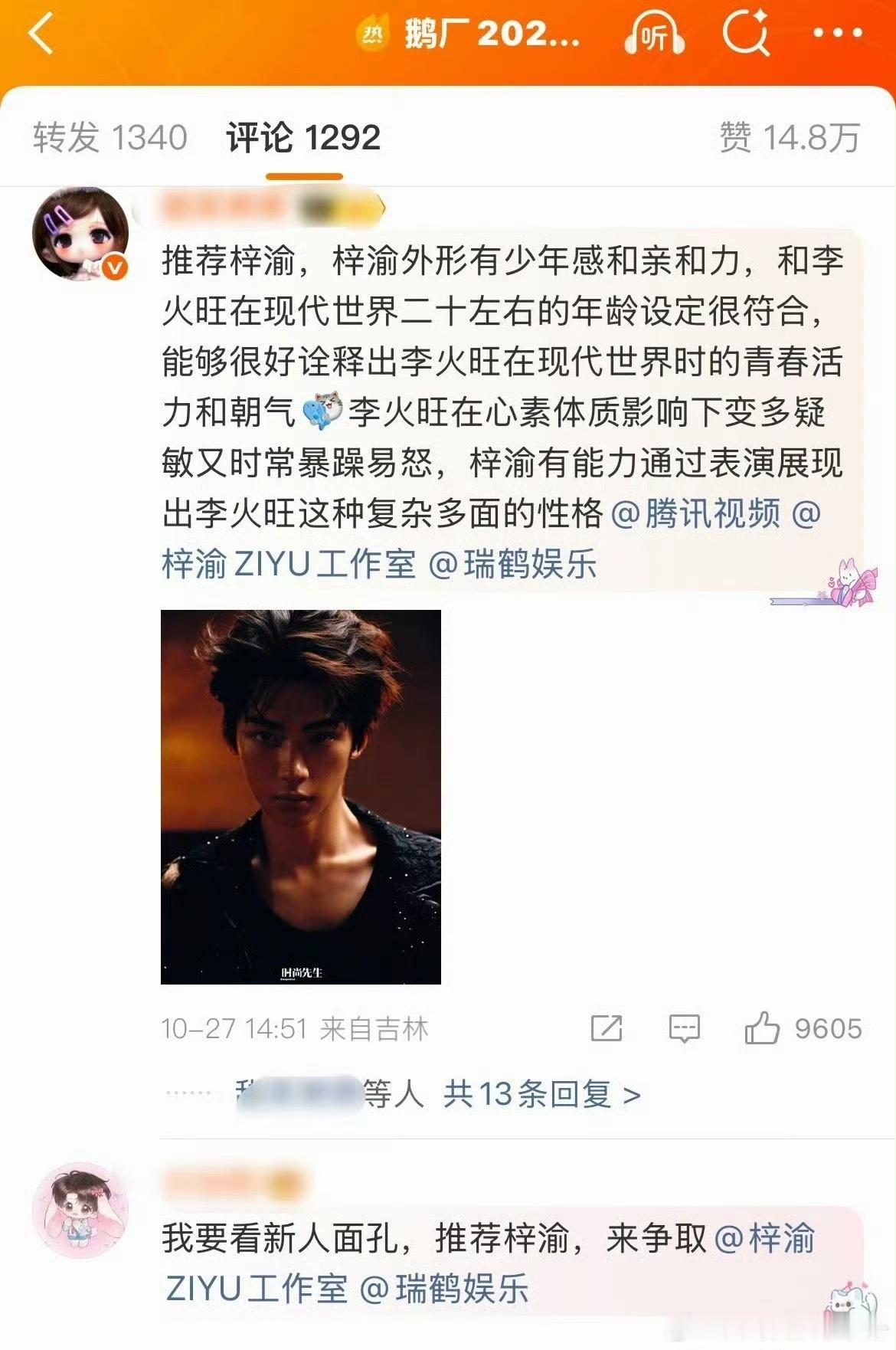 《道诡异仙》影视化评论区梓渝粉丝推荐梓渝饰演男主李火旺,表示梓渝表演情绪入木三分,台词掷地有声,实力声台形表全都过关,人气也高,你觉得适合出演吗?