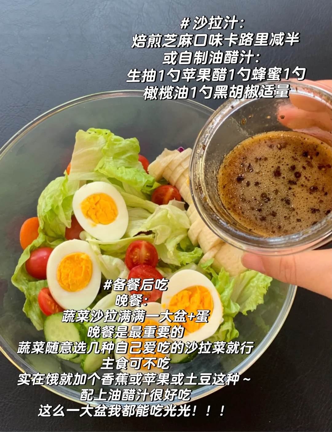 晚餐:蔬菜沙拉🥗一盆+鸡蛋两个(最好不要吃碳水)