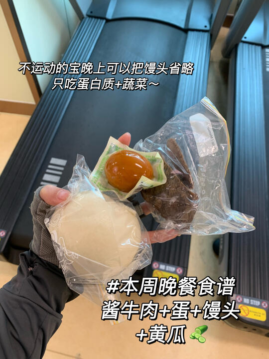 晚餐:酱牛肉🥩+黄瓜🥒+馒头🍞(不运动可只吃蔬菜+蛋白质)