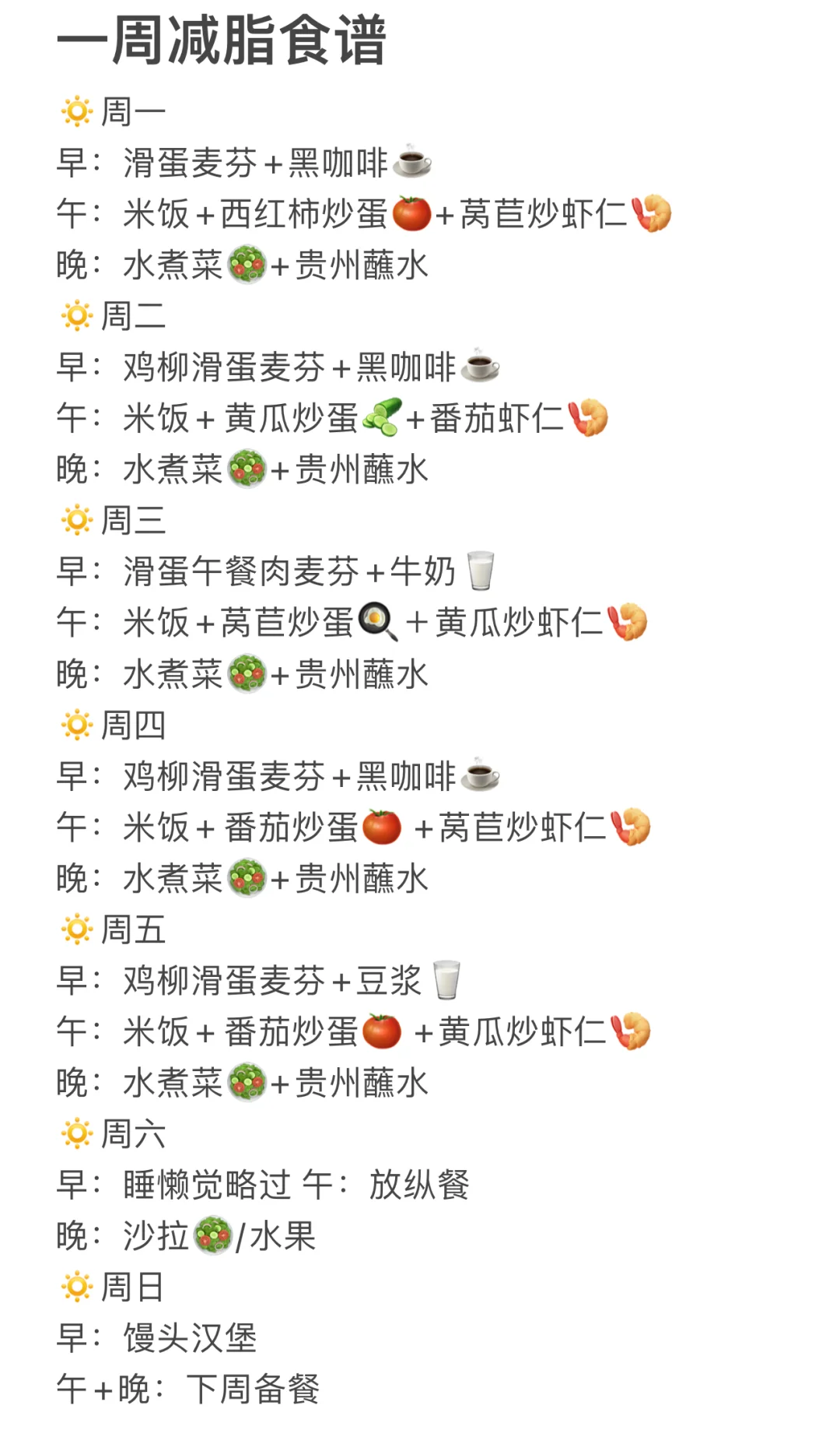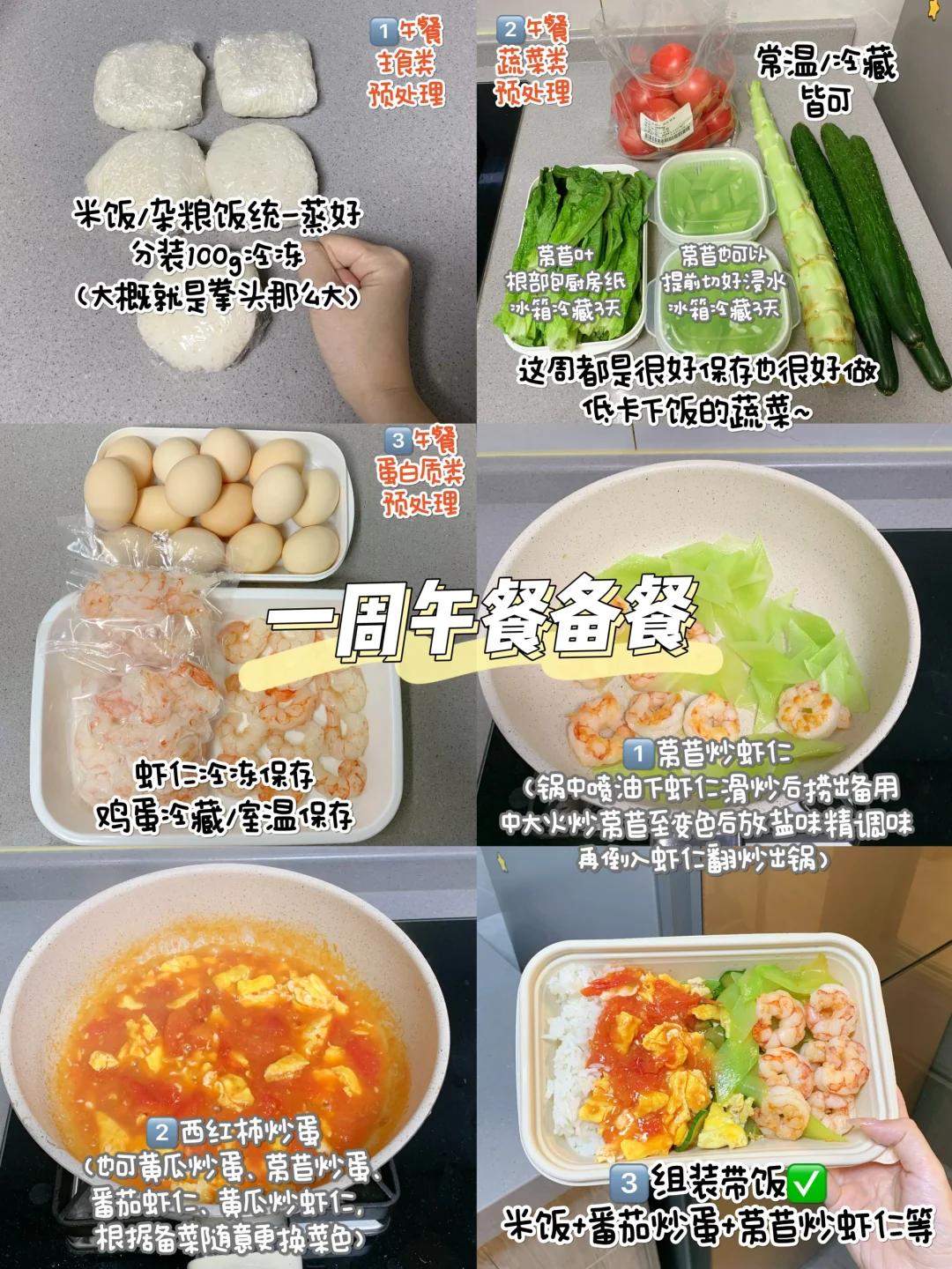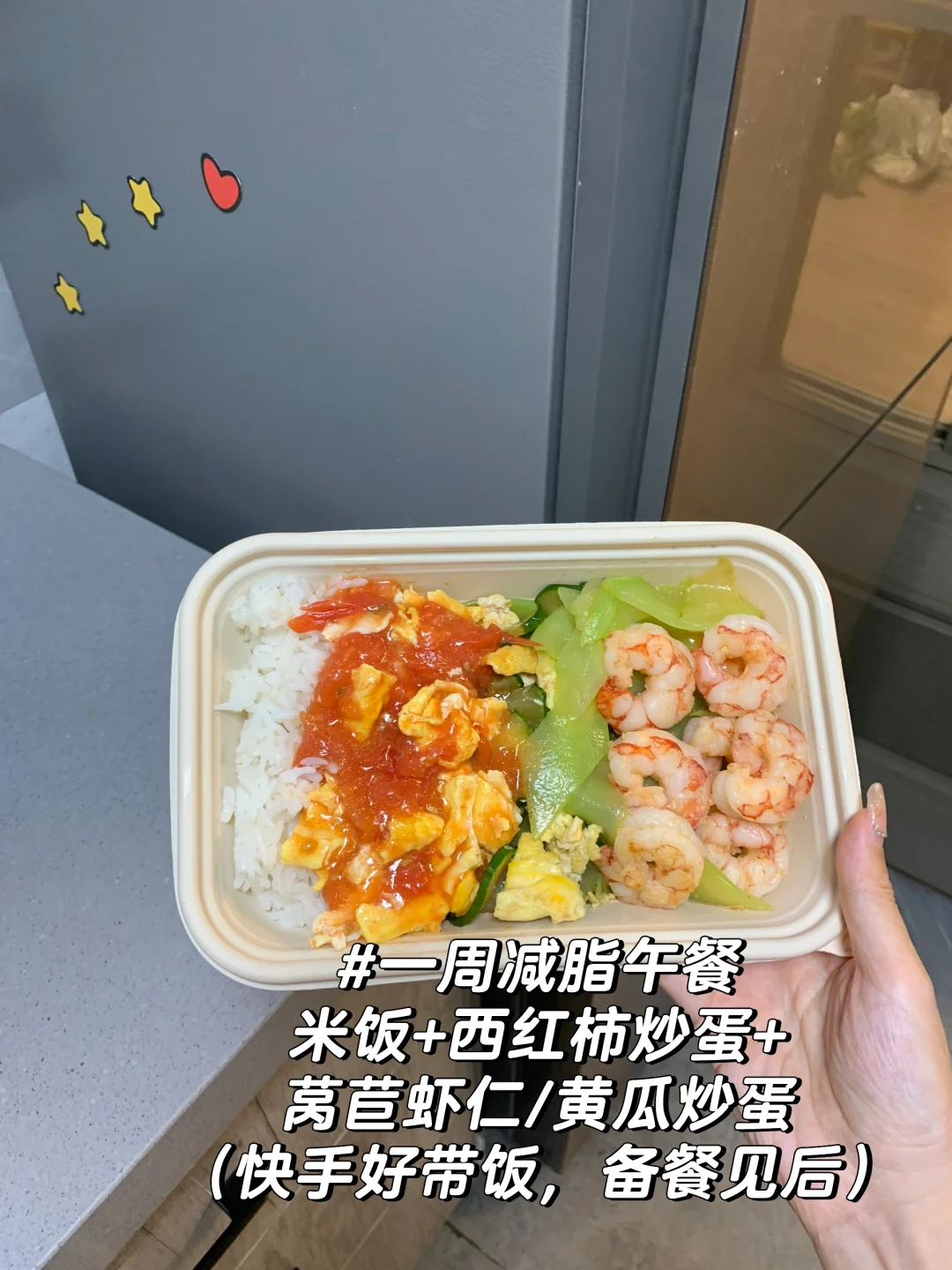 午餐:米饭+西红柿炒蛋🍅+莴苣炒虾仁🍤/黄瓜炒蛋🥚