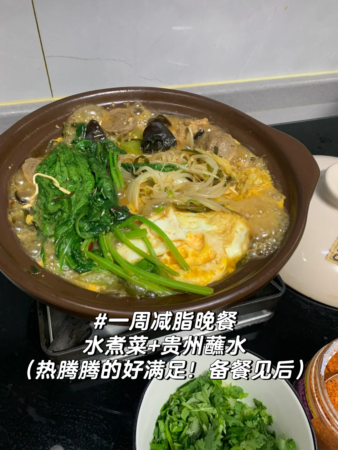 晚餐:水煮菜🥗+贵州蘸水(只吃菜少喝汤!