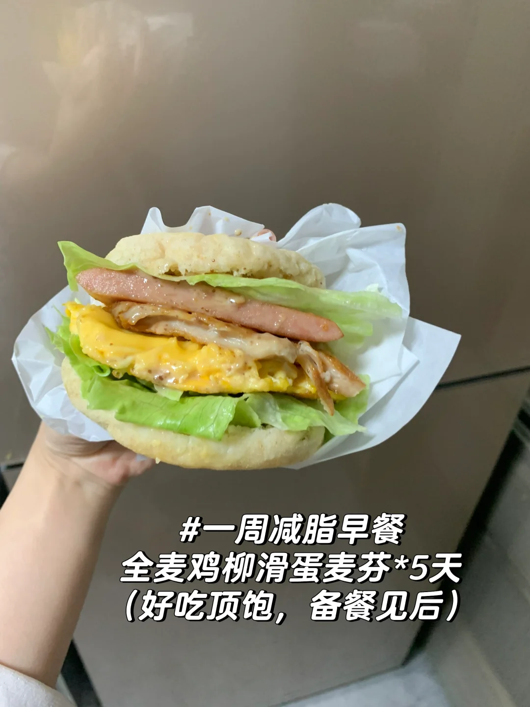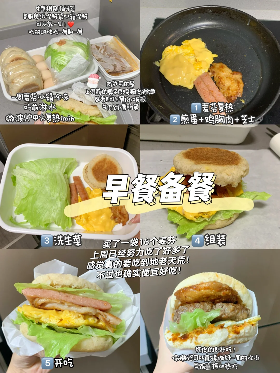 (食材-麦芬1个、煎蛋2个/鸡胸肉100g、生菜适量、芝士1片)