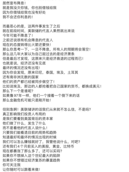 那么你思考一下,一旦不降息,所有人的预期将会落空!