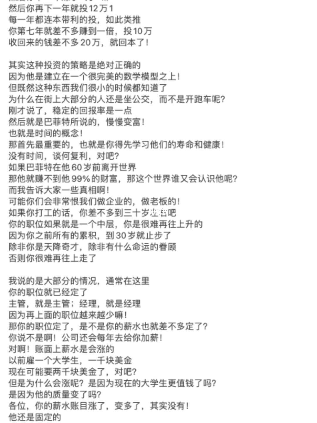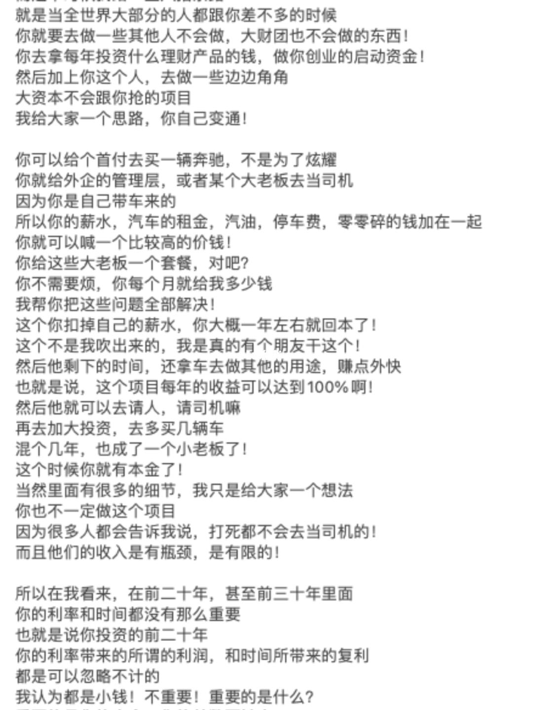 那么他也是跟大部分人一样,打工,然后靠复利发财的吗?